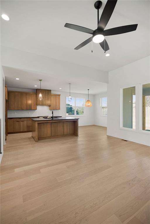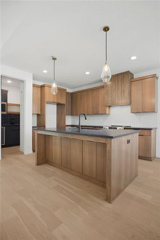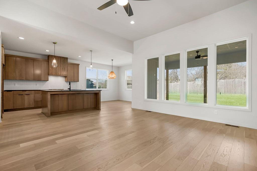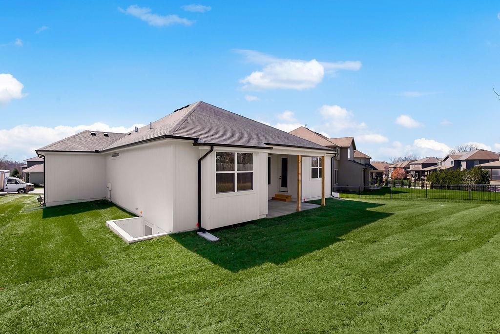 This new reverse 1.5-story Somerset plan by Elevate Design + Build offers a thoughtful layout and community access to resort-style amenities. The home across the street from Heritage Park. Inside, the open-concept main level features a gourmet inspired kitchen with large island and spacious Butler's Pantry with prep sink, microwave, and beverage center. The living room holds a stunning floor to ceiling fireplace wall. The primary suite includes dual vanities, luxury soaker tub, and walk in shower, while a second bedroom and a dedicated office provide main-floor flexibility. The finished lower level adds two bedrooms, two full bathrooms, a large recreation room, and custom wet bar for entertaining. Quality construction and neutral finishes support easy personalization. Located in Stonebridge Park, residents enjoy access to four zero-entry pools, two clubhouses with fitness equipment, sport courts, playgrounds, and walking trails. Nearby amenities include Heritage Park (~0.1 mi) with lake access, dog park, athletic fields, disc golf course, and an 18-hole golf course. Convenient to Prairie Creek Elementary (~0.6 mi), Woodland Spring Middle (~1.0 mi), and Spring Hill High (~5.5 mi). Everyday essentials are close by with local coffee shops (~1–1.2 mi), Natural Grocers (~4.2 mi), and Price Chopper (~1.5 mi). Early spring completion! Measurements and distances approximate; buyer to verify all information.