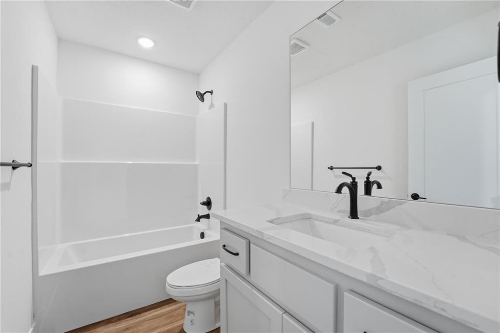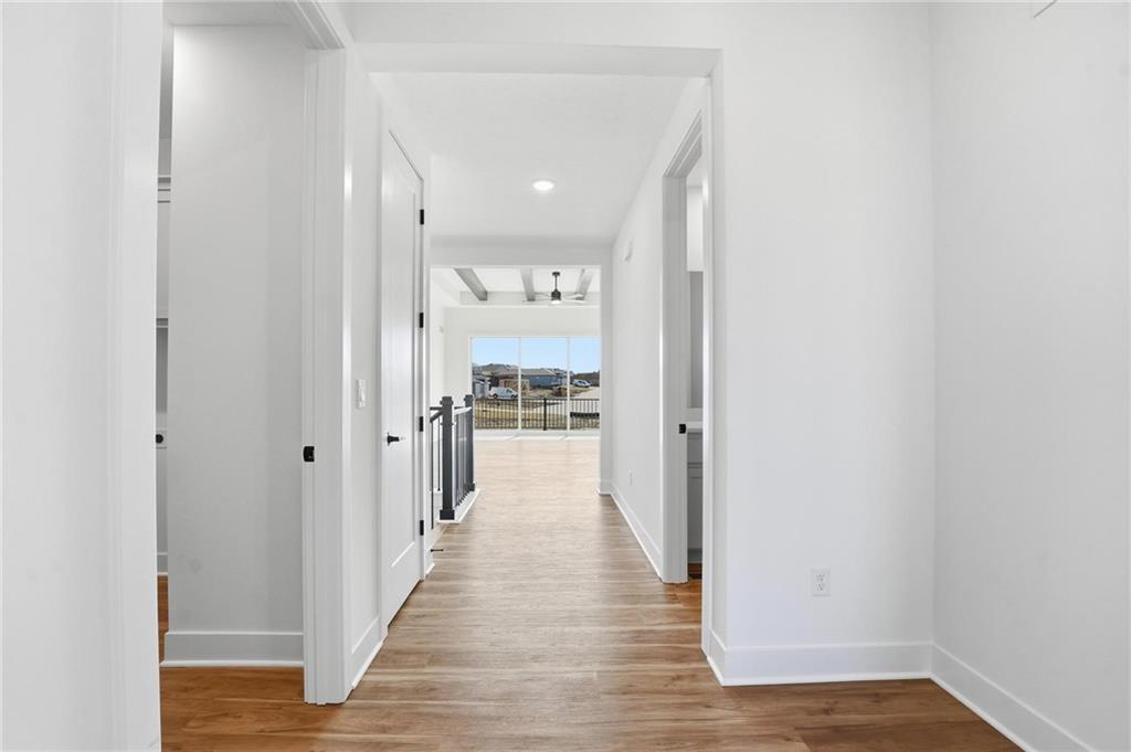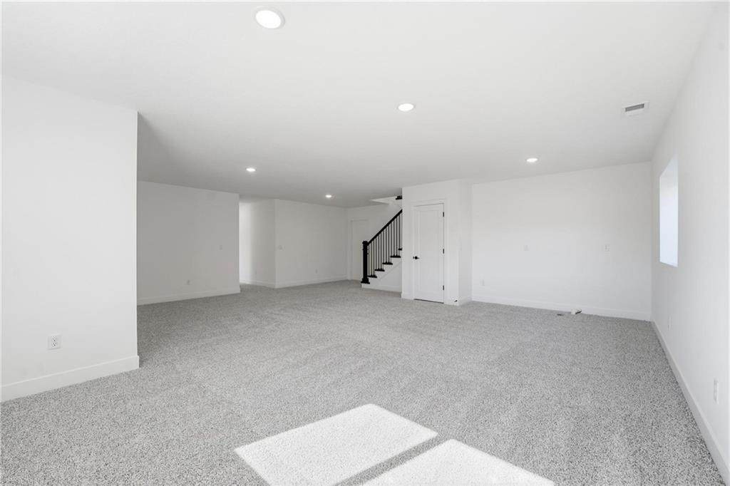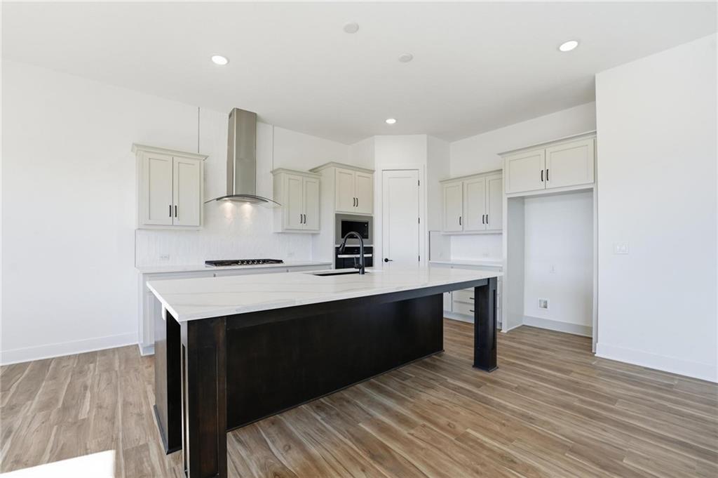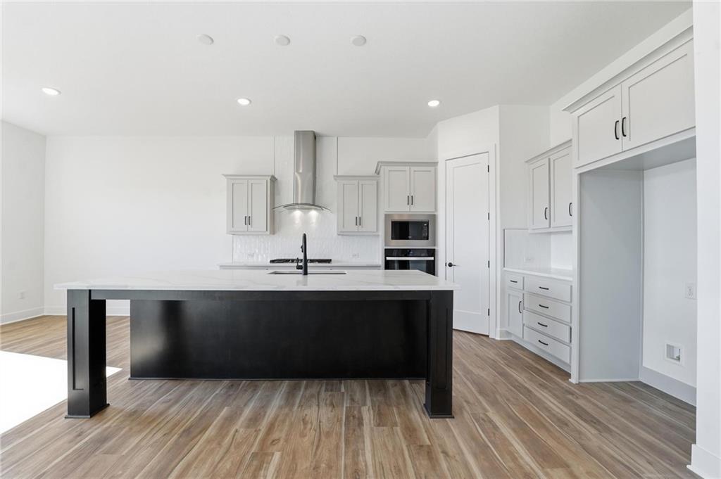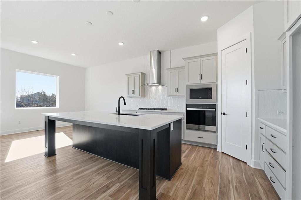 WOW! The stunning Thomas floorplan by Hakes Brothers delivers model quality upgrades and show stopping design throughout. A true highlight of the great room is the expansive 12 inch wide, 8 foot tall, three panel stacking glass door system. These panels slide completely open and tuck away, creating a seamless transition between indoor and outdoor living! perfect for hosting gatherings, enjoying fresh air, and extending your entertaining space with ease. Paired with dramatic wood beams overhead, the space feels both grand and inviting. The main level features 8foot doors throughout, enhancing the home’s open, airy feel. The gourmet kitchen is a standout, showcasing built in stainless steel appliances including a gas cooktop, oven, and microwave. The fully finished basement adds a versatile bedroom and full bathroom, creating the perfect space for movie nights, Sunday football, or entertaining friends and family, truly an entertainer’s dream! Nestled in the highly sought after Grayhawk at Prairie Gardens community, enjoy resort style amenities including a sparkling pool, playground, and open green spaces. Conveniently located just minutes from The Legends shopping, dining, and entertainment, with easy access to K-7, major highways, and only about 30 minutes to Kansas City International Airport. Top-rated schools, vibrant surroundings, and endless conveniences make this home a must see. Home is Ready!