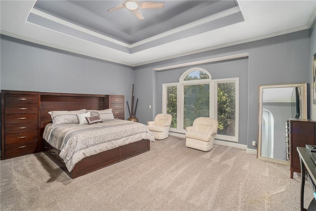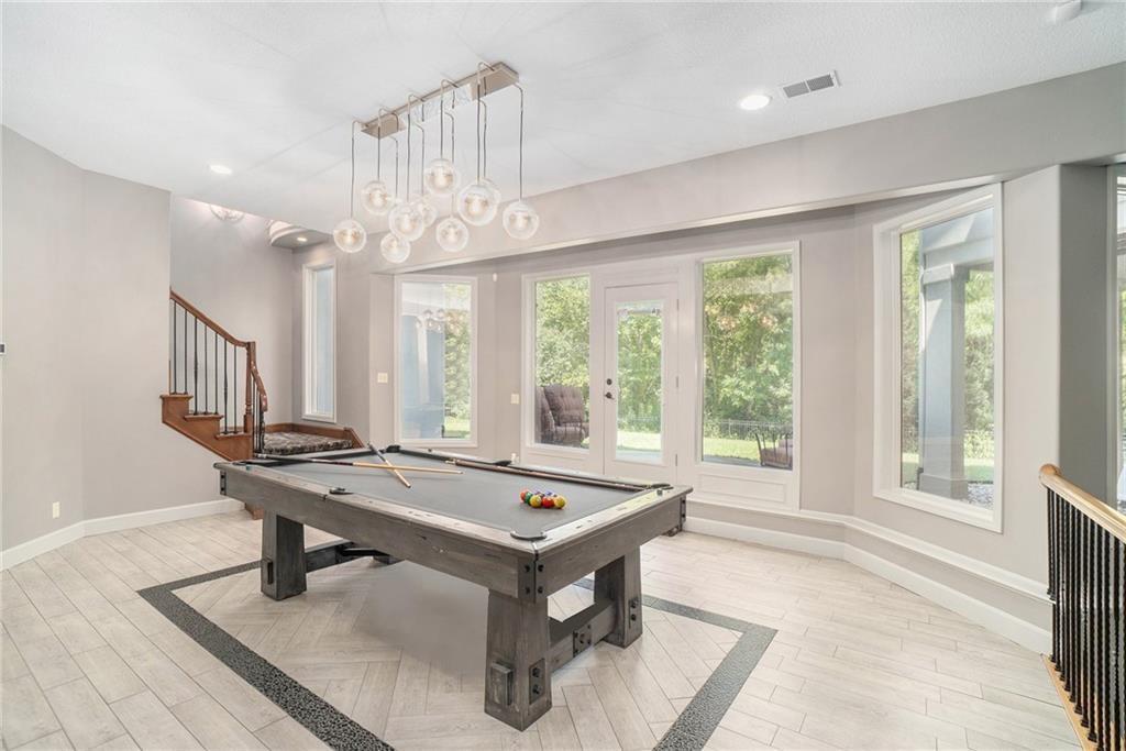 This magnificent Reverse 1.5 Story in Tremont Manor sits on a desirable corner lot backing to lush, mature trees, offering both privacy and curb appeal. Thoughtfully updated throughout, the home features soaring ceilings, beautiful built-ins, and an open, airy floor plan designed for comfortable living and effortless entertaining. The kitchen showcases hardwood floors, a generous island, and abundant cabinetry, flowing seamlessly into the main living spaces. The spacious primary suite is a true retreat with dual vanities, custom built-ins, a walk-in shower, and a separate whirlpool tub. A well-appointed main-level office is filled with natural light, making it ideal for working from home. The finished lower level is perfect for entertaining, complete with a full bar, game area, and expansive family room. The impressive 19x22 suspended garage provides exceptional storage and features a convenient double-door exterior entrance. Step outside to enjoy the peaceful backyard from the covered deck or patio. Recent updates include a newer roof, updated interior and exterior paint, refreshed landscaping, updated light fixtures, flooring, and more. A truly exceptional home—this one is a must-see!