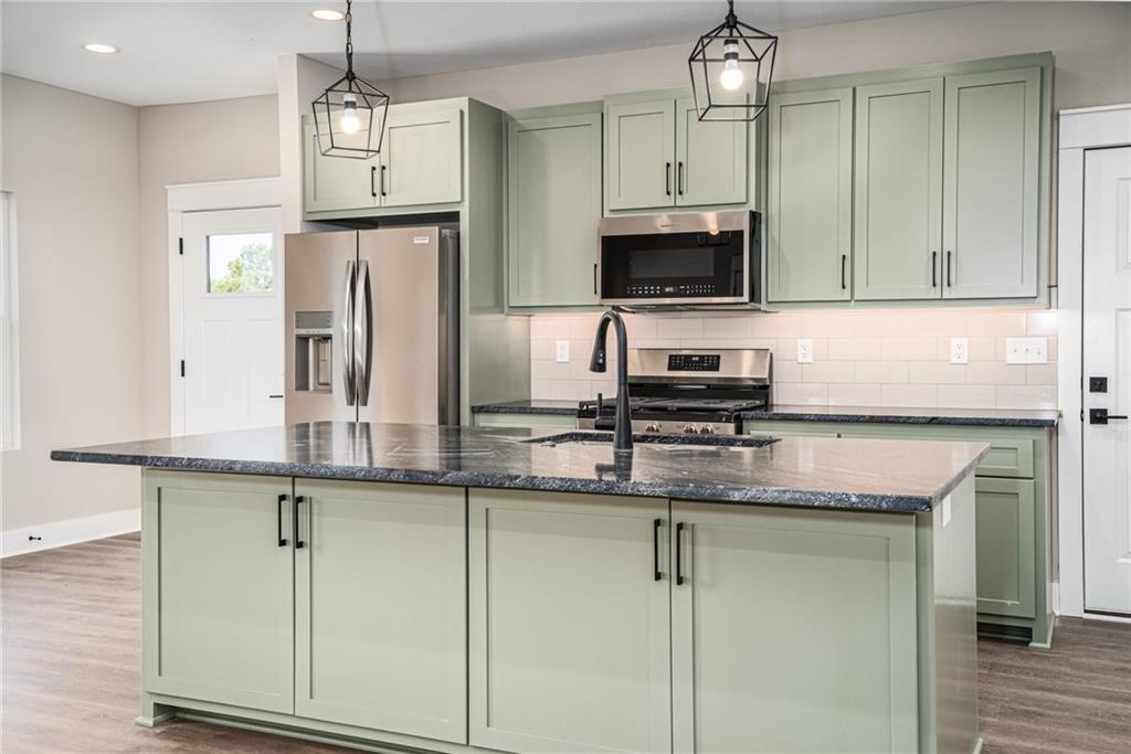 This new construction townhome qualifies for a 5 Year Tax Rebate!! New construction townhome with main-level primary bedroom including double closets. The stylish kitchen is designed to be highly functional, with quartz countertops, a gas range, soft-close cabinets and drawers, and a large pantry. Storage is plentiful throughout this home. The main level bath offers a spacious, beautiful onyx shower. Downstairs, three additional bedrooms share a full bath. There's also extra living space and a spacious laundry room in the walkout basement. One of the downstairs bedrooms opens directly to a patio, providing a private spot to relax or enjoy the outdoors. LVP flooring runs through the main living areas, giving the home a modern look and durability. The neighborhood is just north of town, offering a quieter setting while keeping Highway 56, Gardner, and Lawrence within easy reach. Homeowners can also take advantage of a 5-year tax rebate by submitting proof of tax payment with the city each year to qualify for the rebate.