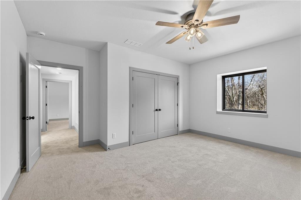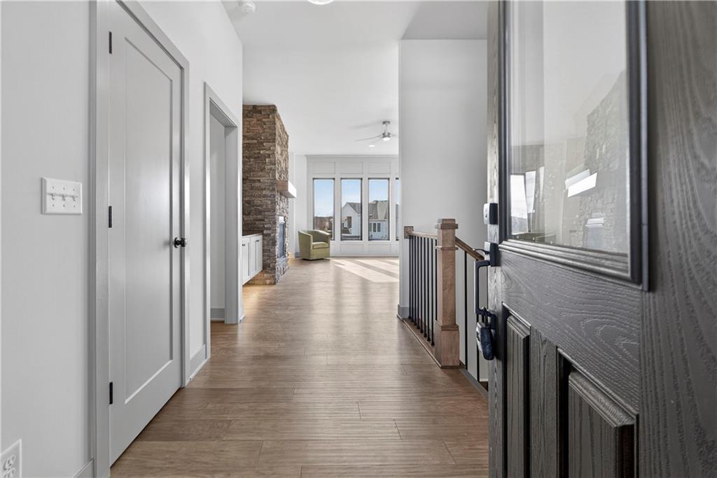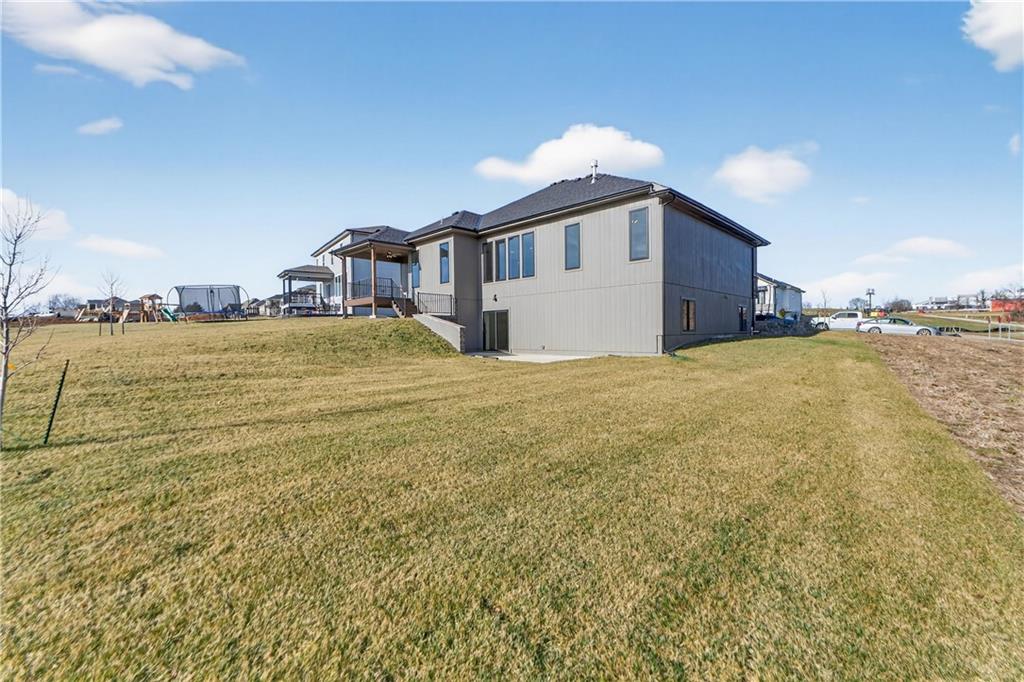 Situated on a premium, private lot backing to serene green space, trails, and a meandering creek, this Reverse 1.5-Story offers the perfect balance of modern luxury and everyday comfort. The thoughtfully designed 4-bedroom, 3-bath layout accommodates both peaceful mornings and effortless entertaining. The main level is anchored by a kitchen featuring sleek quartz countertops, custom cabinetry, a gas cooktop with striking statement hood, and a double-oven configuration with convection microwave. A pocket office is conveniently positioned nearby, while a well-planned mud zone and large pantry seamlessly connects the three-car garage for easy organization and daily functionality. Sunlight fills the great room as it flows into the primary suite, with the laundry thoughtfully located just steps away. A secondary main-level bedroom is privately tucked away—not immediately off the front entry—offering flexibility for guests or a more private home office. The walkout lower level is bright and inviting, designed for gatherings with a spacious recreation room, wet bar, and two generously sized bedrooms. Outdoors, enjoy the tranquility of a peaceful dead-end street with minimal neighbors, an expansive backyard, and an in-ground sprinkler system. Ideally located just minutes from shopping, dining, and entertainment along Adam’s Dairy Parkway, with quick access to I-70 for effortless commuting. Exceptional design, privacy, and convenience come together here—schedule your private tour and experience it for yourself.