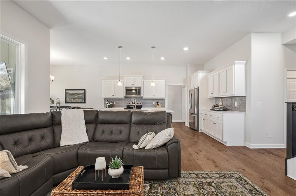 Better than new and move-in ready! This 5-year-old 1.5-story home offers 4 bedrooms, 2.5 baths, and a spacious 3-car garage in a highly desirable setting backing to green space—truly stunning when the trees are in bloom. The open and airy layout is complemented by neutral décor and custom blinds throughout, making it easy to personalize and enjoy from day one. The main level features a comfortable primary suite and inviting living spaces, while the upper level provides additional bedrooms and flexibility. A large unfinished basement offers endless potential, already equipped with an egress window for a future 5th bedroom and plumbing in place for an additional bathroom. Enjoy peaceful views, privacy, and access to top-rated Lee’s Summit Schools. This home combines thoughtful design, future expansion opportunities, and a beautiful natural backdrop—don’t miss it!