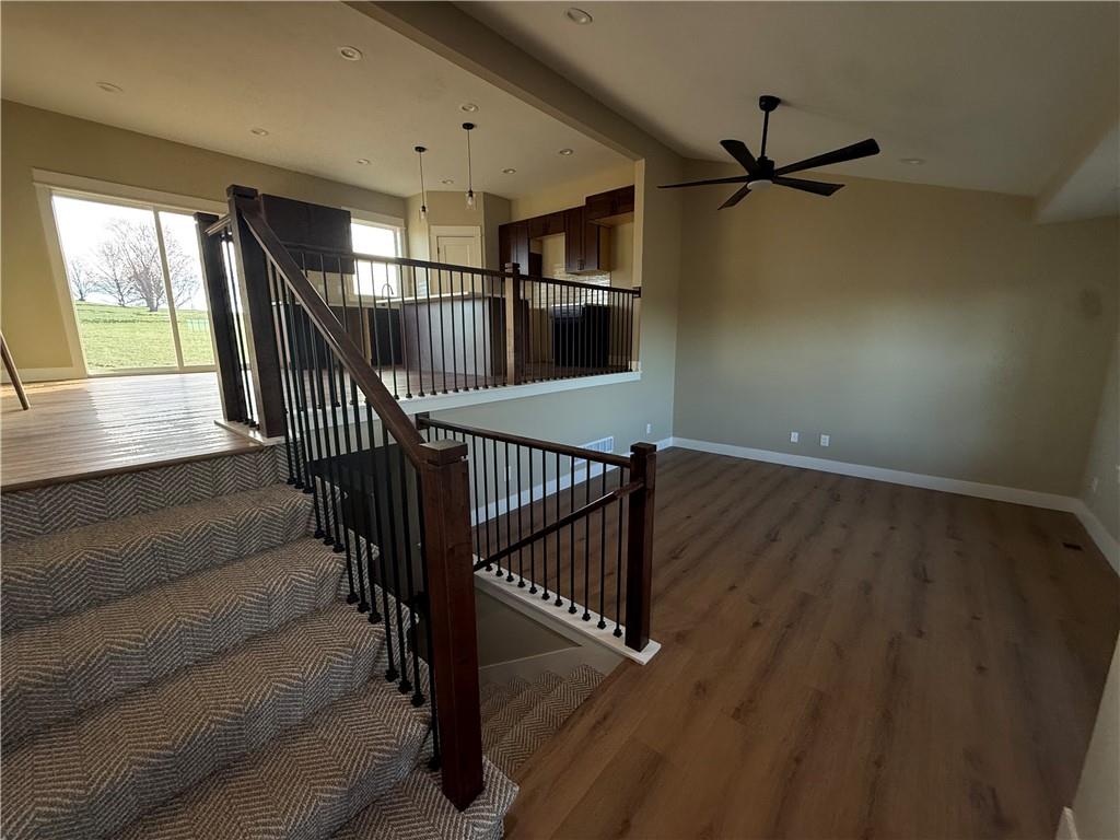 DISCOVER THE PERFECT BLEND OF MODERN COMFORT & PEACEFUL SURROUNDINGS IN THIS BRAND NEW CONSTRUCTION HOME! Enjoy the hillside setting in a rural subdivision just 2 miles South of Ottawa and easy I-35 access. This thoughtfully designed 4 br 2 ba home offers durable finishes like luxury vinyl plank flooring thru out which is ideal for both everyday living and entertaining! Roomy primary suite has walk in closet-lovely tiled shower and convenience of laundry just outside the door- Secondary bedrooms and additional bath are also located on this level as well as a Lovely kitchen w/island, pantry and beautiful wrought iron railings overlooking the large living room w/vaulted ceiling on the lower level. Enjoy the privacy offered w/the 4th bedroom on the lower level. Open layout provides welcoming flow , while large windows capture the Beauty of the surrounding landscape. Whether you're enjoying quiet evenings or quick commutes into town, this property delivers the best of both worlds! Taxes are on vacant lot only-Will change when re-evaluated w/new const. Floorplan is for illustrative purposes only. All dimensions and layouts are approximate.