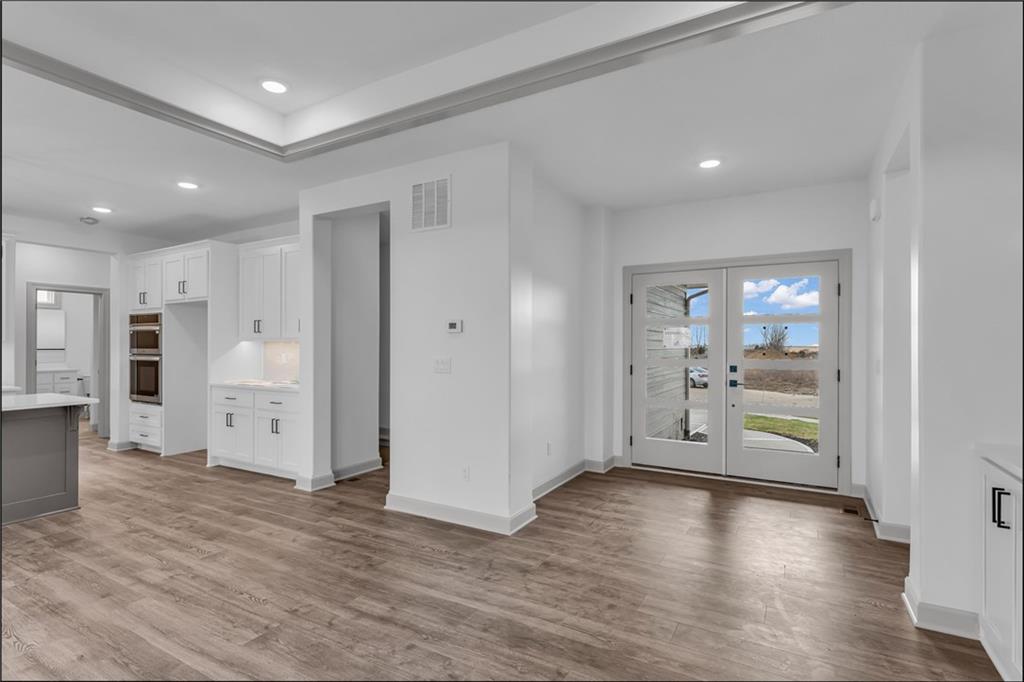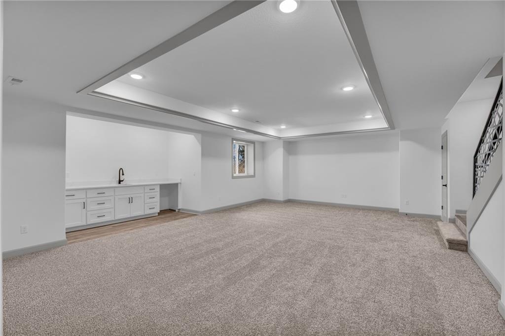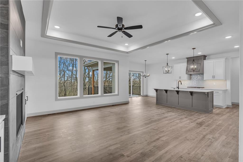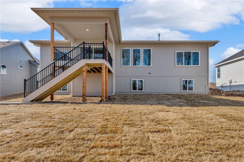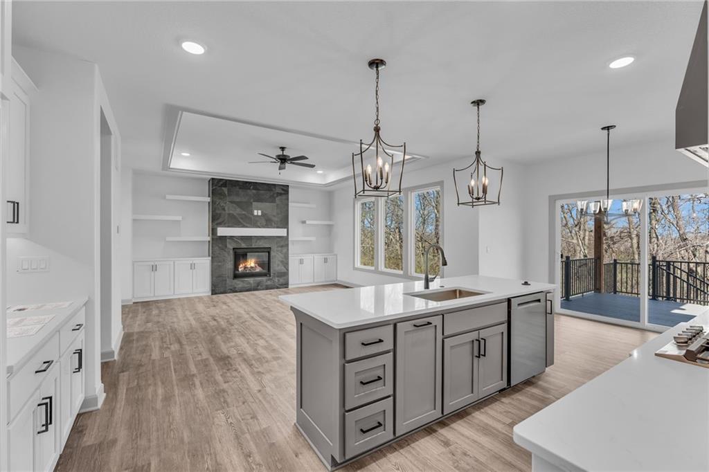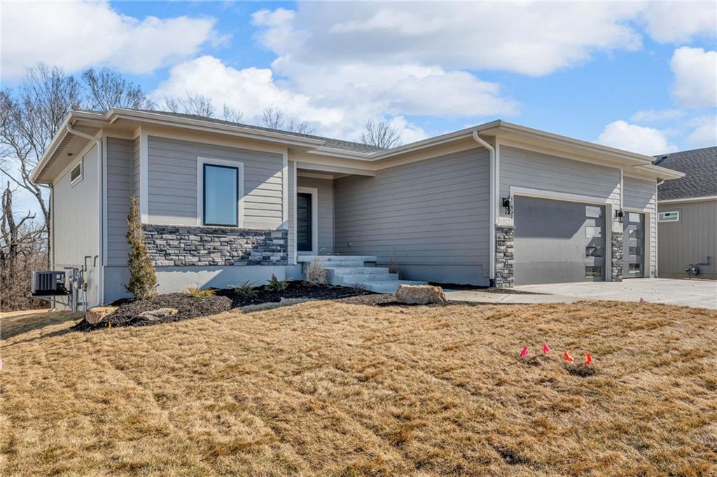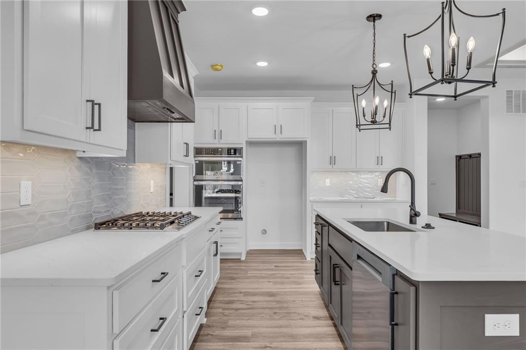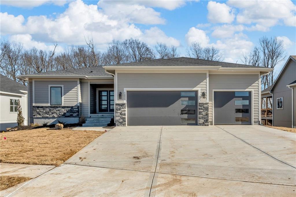 The Bridgeport II floorplan built by Drippé Homes. Modern finished open concept daylight basement with tons of natural light! Kitchen furnished with stainless appliances, gas cooktop, hood vent, microwave, wall oven, quartz countertops, large island with oversized sink and spacious walk in pantry. Two bedrooms on main with primary opposite other bedroom. Ensuite features double vanity, tiled walk-in shower, private water closet and gigantic closet with pass through to laundry. Mudroom off garage with boot bench. Finished basement with two additional bedrooms and rec room complete with wet bar, ready for hosting the next big game. Cozy up to the fireplace in the living room or enjoy the sunrise from the covered composite deck. Home backs to tree-line providing ultimate privacy with sod and sprinkler system included. Unfinished basement storage and three car garage provide plenty of storage. Almost ready for your personal touch - schedule a showing today!