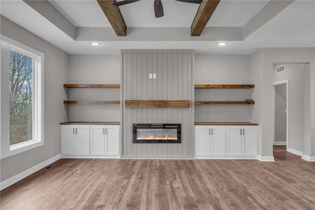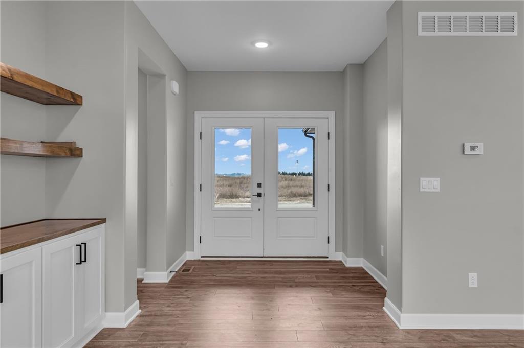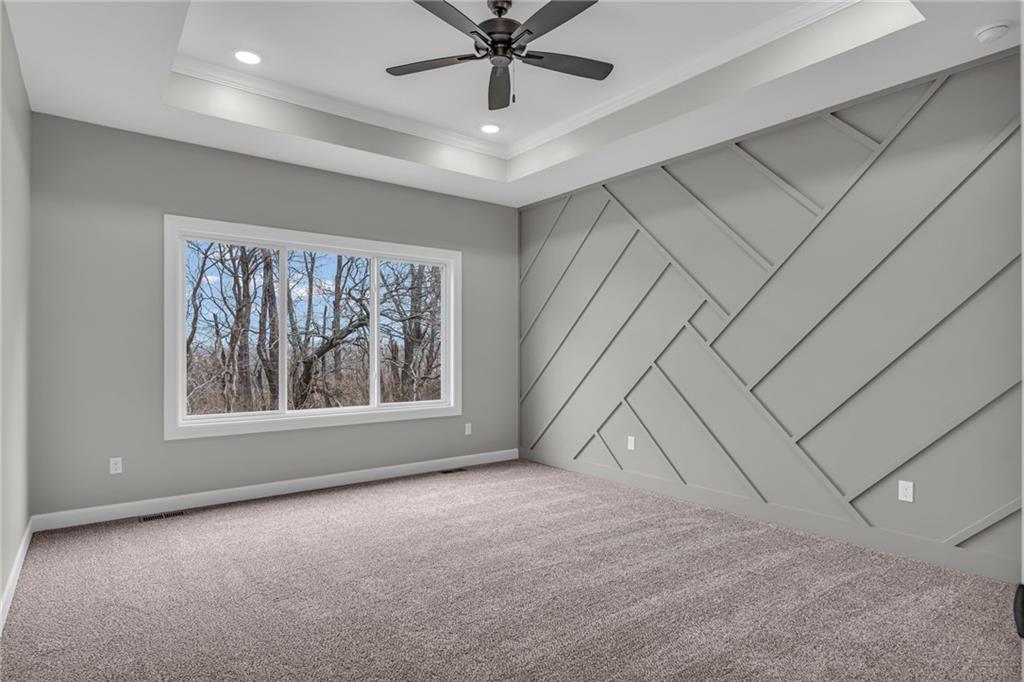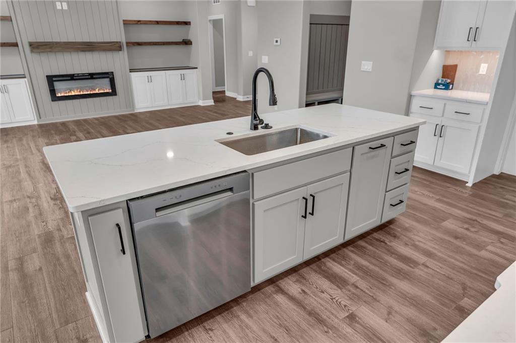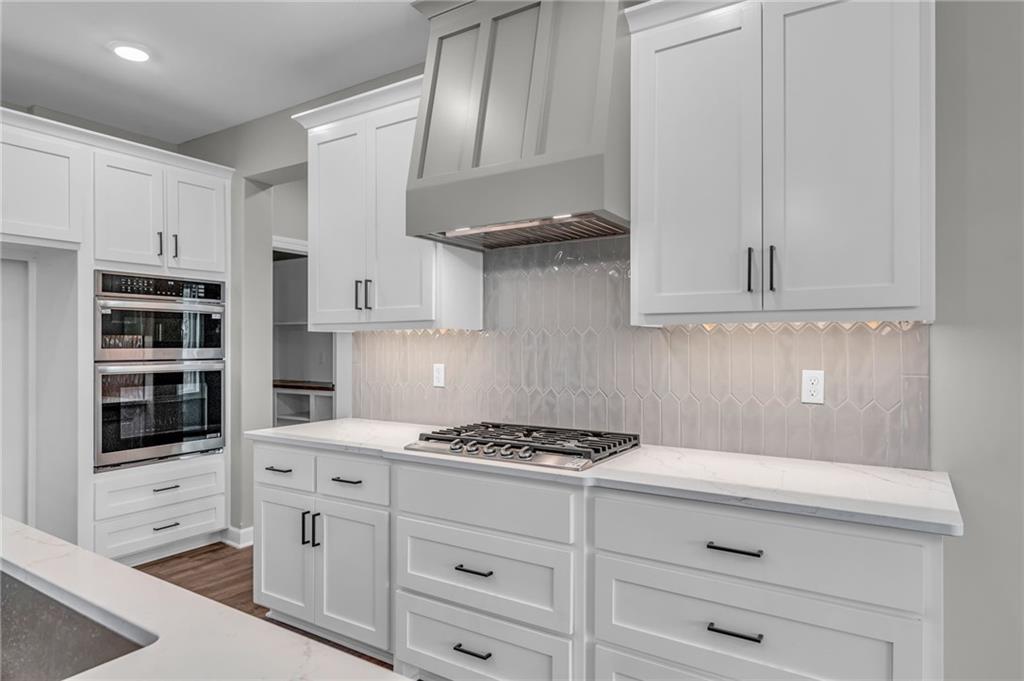 The Bridgeport II floorplan built by Drippé Homes. Open concept daylight basement with tons of natural light! Rustic ceiling beams, stucco front, and gorgeous built ins. Kitchen furnished with stainless appliances, gas cooktop, hood vent, microwave, wall oven, quartz countertops, large island with oversized sink and spacious butlers pantry. Two bedrooms on main with primary opposite other bedroom. Ensuite features double vanity, tiled walk-in shower, private water closet and gigantic closet with pass through to laundry. Mudroom off garage with boot bench. Finished basement with two additional bedrooms and rec room complete with wet bar, ready for hosting the next big game. Cozy up to the fireplace in the living room or enjoy the sunrise from the covered composite deck. Home backs to tree-line providing ultimate privacy with sod and sprinkler system included. Unfinished basement storage, built-ins and three car garage provide plenty of storage. Almost ready for your personal touch - schedule a showing today!