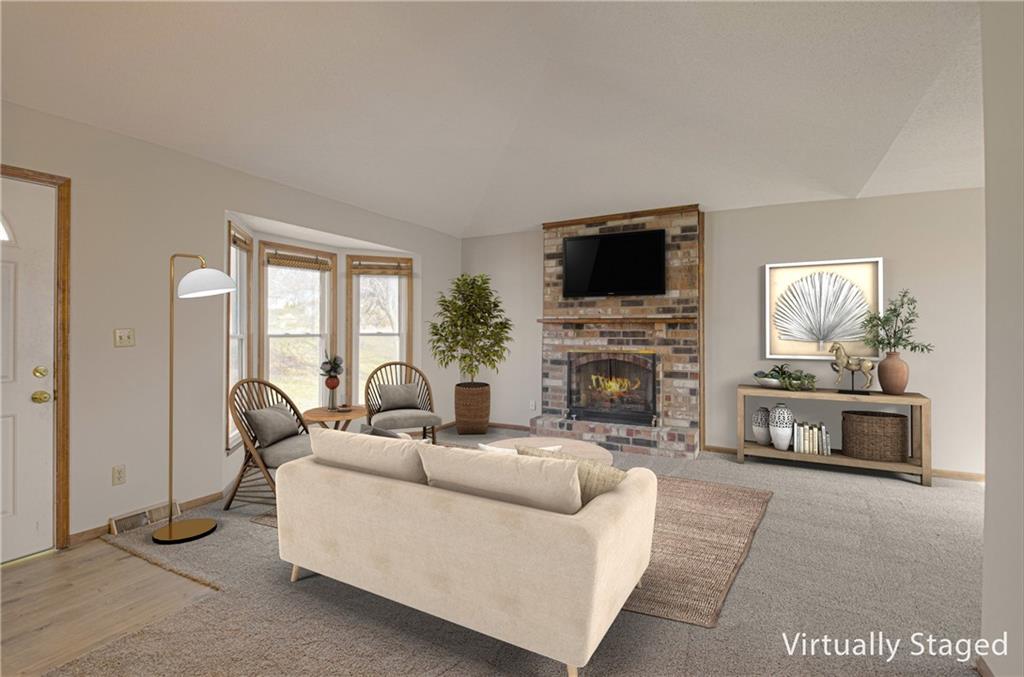 Adorable raised ranch,fully updated and move-in ready!Features include quartzite countertops, new cabinets thruout, beautifully updated baths, and two brick fireplaces for added charm and comfort. The family room with fireplace is flanked with bay windows in the front. Charming dining area overlooking flat treed lot-perfect for extra outside activities.Bedrooms are generous in size. 2 full baths completely redone with new plumbing throughout, Anderson Windows.Situated on a rare 3/4 acre lot with a 2 car garage, all just minutes from the new Lenexa City Center. A perfect blend of modern updates, space and location.