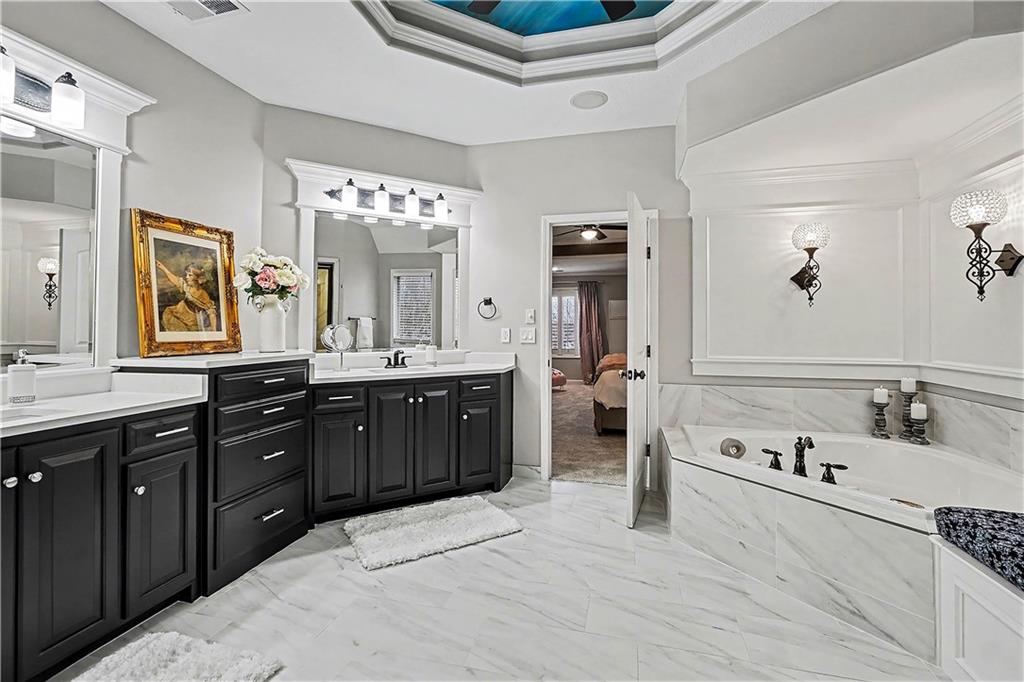 Welcome home to this stunning, highly sought-after Staley Farms community—where memories are made and lifestyle comes first. From the moment you arrive, the charming curb appeal sets the tone with a brick driveway, tile roof, and inviting back sitting porch with a cozy fireplace. The backyard is made for family time, featuring a fabulous patio and fire. With over 5,000 square feet, this beautifully updated two-story home offers 5 bedrooms, 4.1 baths, and a 3-car garage, providing plenty of space. Every inch has been thoughtfully updated with today’s family needs in mind. The main level is warm and welcoming with gleaming hardwood floors, abundant natural light, and a semi-open floor plan. A private home office with double doors offers a quiet work space. The heart of the home is the massive, newly remodeled kitchen—complete with an oversized island, quartz countertops, gas stove, walk-in pantry, and a sunny eat-in area that flows into the hearth room with a fireplace and built-ins. The conveniently located laundry room just off the kitchen adds ease to daily routines. An expansive living room with fireplace opens to the dining room, creating the ideal layout. Upstairs, the spacious primary suite is a true retreat with a sitting area and a beautifully remodeled bath featuring a steam shower, double vanities, and a walk-in closet. Three additional bedrooms with walk-in closets and two full baths complete the second level. The lower features a fifth bedroom/exercise room, full bath, a second family room, and a theater room. Recent updates include newer heating and cooling systems, new lighting, new carpet throughout, refinished hardwoods, new hot water tanks, and so much more. The home has been meticulously maintained and is truly move-in ready. Enjoy all that Staley Farms has to offer, including a clubhouse, golf course, pool, walking trails, and a strong sense of community. This is more than just a house—it’s a place to grow, gather, and create lasting memories.