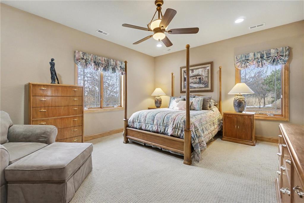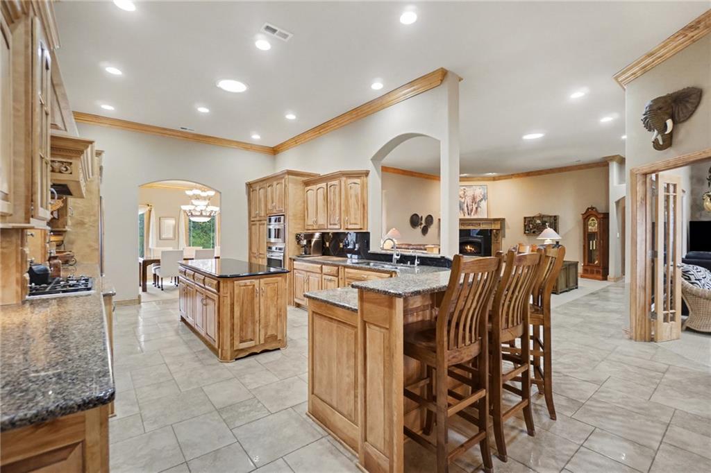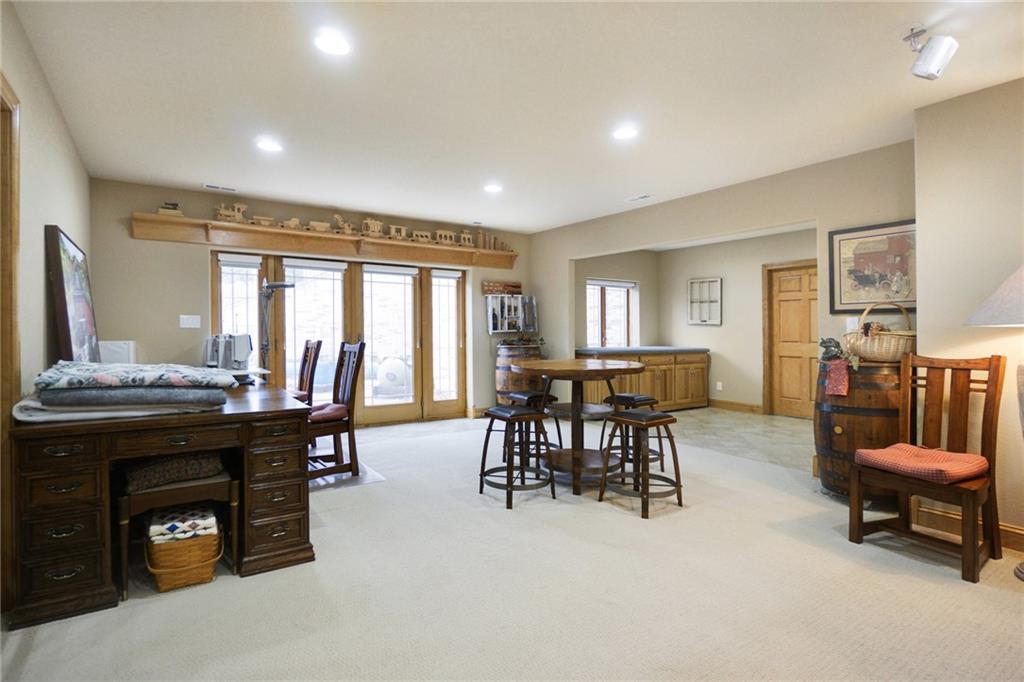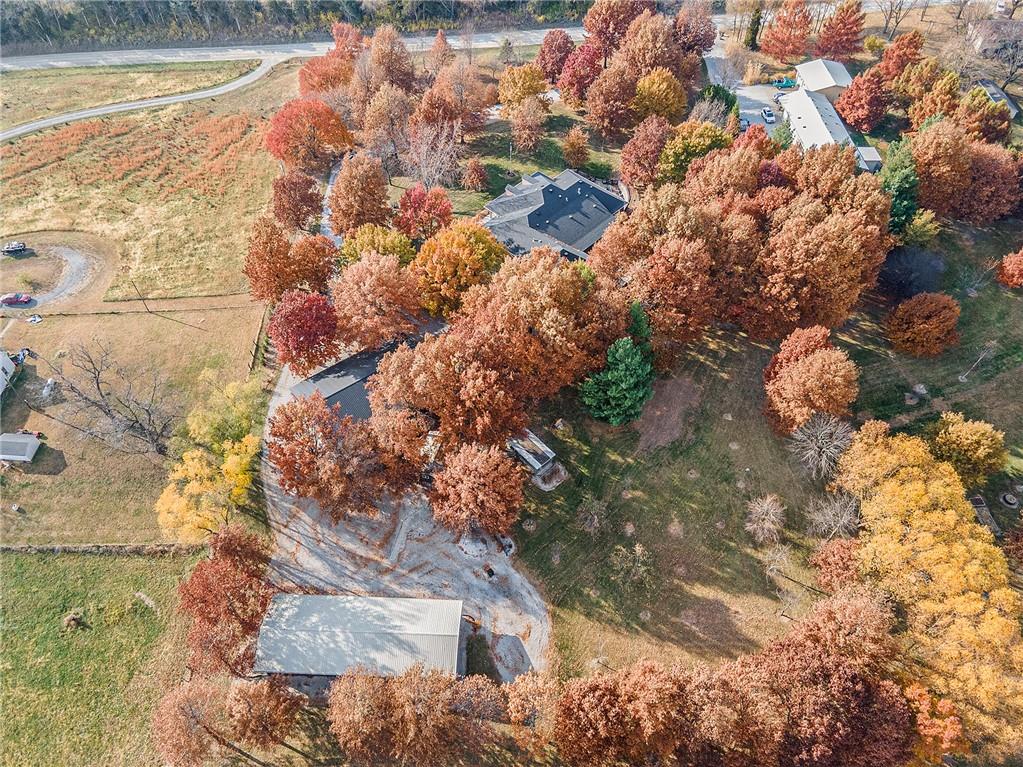This breath-taking, custom-built brick estate is set on 3.94+/- Acres. Carefully maintained, this impressive property offers over 4,500 sqft of finished living space and boasting multiple well-equipped outbuildings that seamlessly blend convenience w/functionality. The main level offers a front formal dining room & a sun-filled family room overlooking the serene backyard. The exceptional kitchen includes stone counters, a large island, built-in appliances, a gas cooktop & opens seamlessly to the living room. A breakfast nook provides casual dining, while the oversized laundry room includes pantry & storage closets plus a convenient full bath. The primary suite is a true retreat w/vaulted ceilings, separate his-and-hers walk-in closets, & a spa-like ensuite showcasing a dual-sink vanity & center whirlpool tub. Vaulted ceilings, solid hickory cabinetry, trim & interior doors are found throughout, highlighting the quality craftsmanship. Secondary bedrooms are generously sized w/excellent closet space & nearby bath access. The walkout lower level expands the living space w/a large family/rec room, a den that could serve as a non-conforming 5th bed, a full bath & a wetbar ideal for entertaining. Efficiency upgrades include radiant in-floor heat, LP gas furnace, multiple A/C systems, a Bosch electric boiler, high-efficiency water softener & 13 solar tubes for abundant natural light. More features include Andersen casement windows, a newer composition roof, five solar roof fans & R49 attic insulation. Outdoor living shines w/open & covered patio areas, a custom firepit & concrete walkways. The beautifully landscaped grounds feature mature oak, white pine trees, fruit trees, a working windmill, gazebo & storm cellar. Outbuildings include a 40’x60’ insulated shop w/heat, A/C, water, sink & urinal; a 27’x84’ Cleary building w/(4) 16’ automatic overhead doors & electric; an insulated chicken coop, livestock building & fenced dog kennel w/water access.