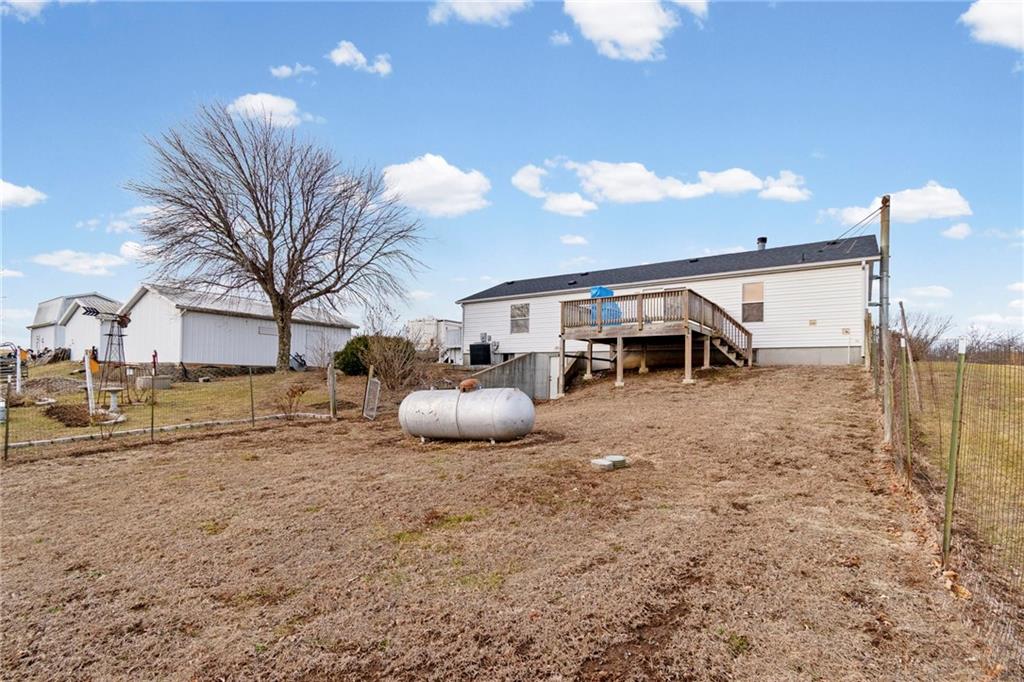 Nestled on 6.7 scenic acres with blacktop frontage, this 1999 well maintained, manufactured home offers the perfect blend of comfortable living and country charm. The main level features 3 bedrooms and two full bathrooms, a welcoming spacious living room with a wood-burning fireplace, and a formal dining area ideal for gatherings or use as a home office. The kitchen comes fully equipped with appliances. The walkout concrete basement is partially finished and includes a wood burning stove, offering additional living or recreational space with room to expand. The seller will also leave additional building materials. Major updates include a roof and an updated HVAC system. Outside the property truly shines with raised garden beds, a greenhouse, chicken coop, mature trees, and private trails - perfect for enjoying nature and local wildlife. There is also a detached two-car garage. While the home is on rural water, there is also a private well for added versatility including gardening! This property is ideal for buyers seeking a little piece of country living! Government loan buyers are welcome! Make your appointment today.