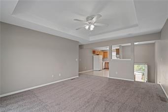 This South facing 1/2 duplex features a roof that is just over 2 years old, and all flooring & interior paint is about the same age! It has 3 bedrooms (2 on the main level and one on the garage/lower level). The master bedroom has 2 closets. There is a full bathroom on the main floor and on the lower level. In addition to the 2 bedrooms and bath on the main, you will also find a very large great room with deck access and a kitchen/dining area! The Lower level has direct access to the 2-car garage, a nicely sized bedroom, laundry area and full bath. There are no houses behind so the deck view is of nature! Lawncare, street snow removal and trash pick up are included in the maintenance. There is also a free playground and basketball court nearby. Very easy access to 69HWY and only minutes from Overland Park. Currently this property is tenant occupied so please be courteous in allowing enough showing notice. The lease is month to month.