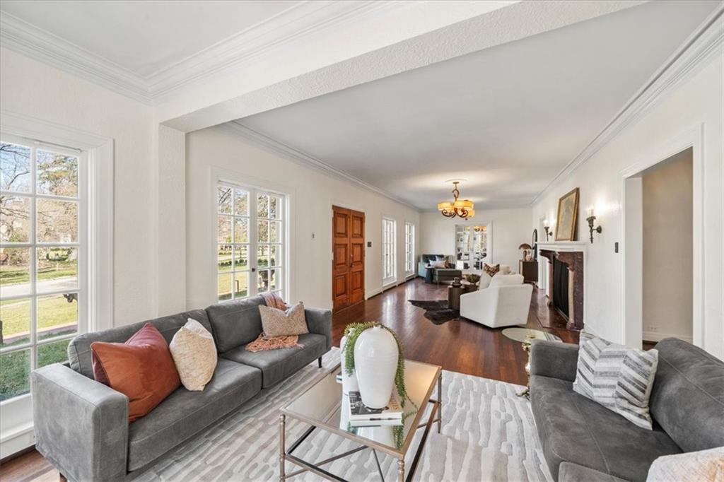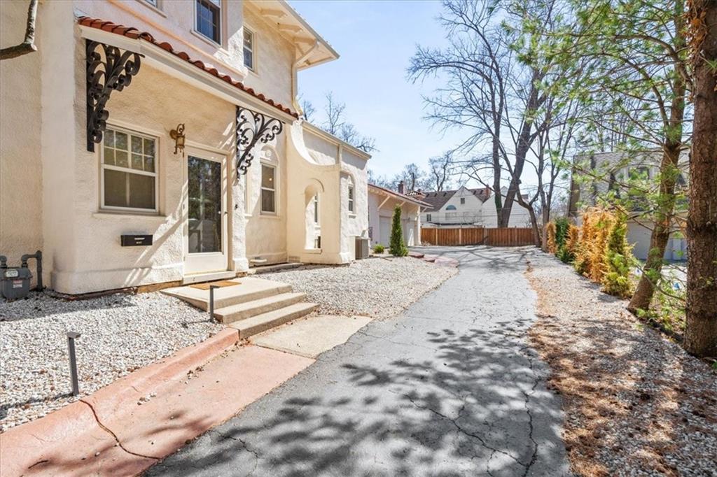 Thoughtfully updated and rich in character, this stunning Spanish-style home blends timeless architecture with modern improvements in the heart of Brookside. Recent upgrades—including fresh paint, new attic insulation, updated electrical, and refreshed landscaping—offer peace of mind while preserving the home’s original charm. Step through the solid wood double doors into an impressive living room filled with natural light from oversized windows. This remarkable space features beautifully maintained hardwood floors, built-in shelving, a stone fireplace, and striking light fixtures that create a warm yet sophisticated atmosphere. Tall ceilings and detailed molding add to the home’s classic appeal. The spacious dining room is ideal for hosting, comfortably accommodating large gatherings and flowing seamlessly into the modern kitchen, complete with granite countertops and ample cabinetry. Just beyond, the sunroom offers a versatile space perfect for a home office, or playroom, with direct access to the expansive backyard—large enough for a garden, pool, and still plenty of green space. The main level also features one of two primary suites, highlighted by a charming clawfoot tub, along with a convenient laundry area and an additional flexible room ideal for a playroom or den. The home’s Spanish influence continues with a beautifully tiled staircase, adding a unique touch. Upstairs, you’ll find two generously sized secondary bedrooms and a full bath. The second-level primary suite offers a true retreat, featuring a massive walk-in closet, private balcony access, and a fully updated, modern bathroom. Additional highlights include a 3-car garage, a large front yard, and a blend of hardwood and terracotta tile flooring throughout. Ideally located just minutes from Brookside favorites like the Trolley Track Trail, Earl’s Premier, and The Brooksider, with easy access to the Plaza and downtown Kansas City, this home offers a rare combination of character, space, and location.