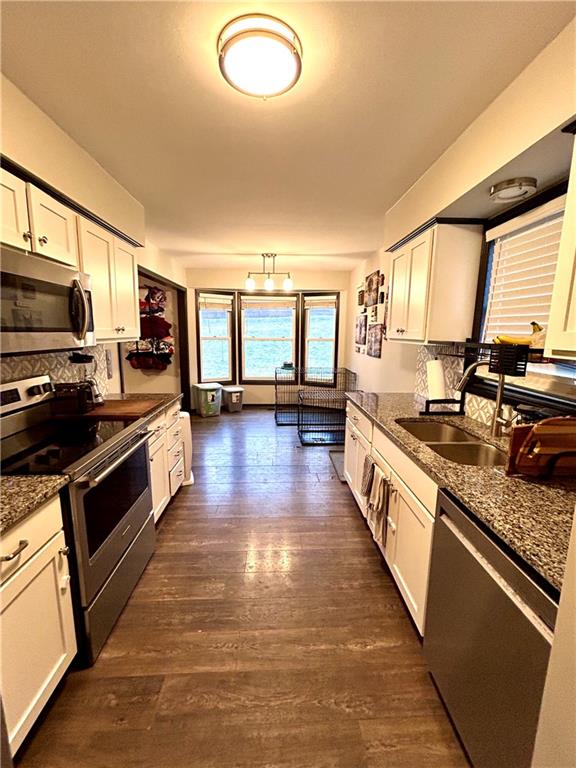 Beautiful raised ranch home on a quiet road. Situated convenient to I-29, Frederick ave, and N belt highway. Enjoy cozy winter nights next to the fireplace or entertain guests in the finished basement rec space. This home boasts 3 beds with additional 4th non conforming bedroom on basement level, 2 and half baths, formal dining, eat in kitchen, large fenced in backyard with deck, large 2 car basement garage and bedroom level laundry. Updates include flooring, newer roof, furnace, hot water tank, A/C, sprinkler system and appliances.