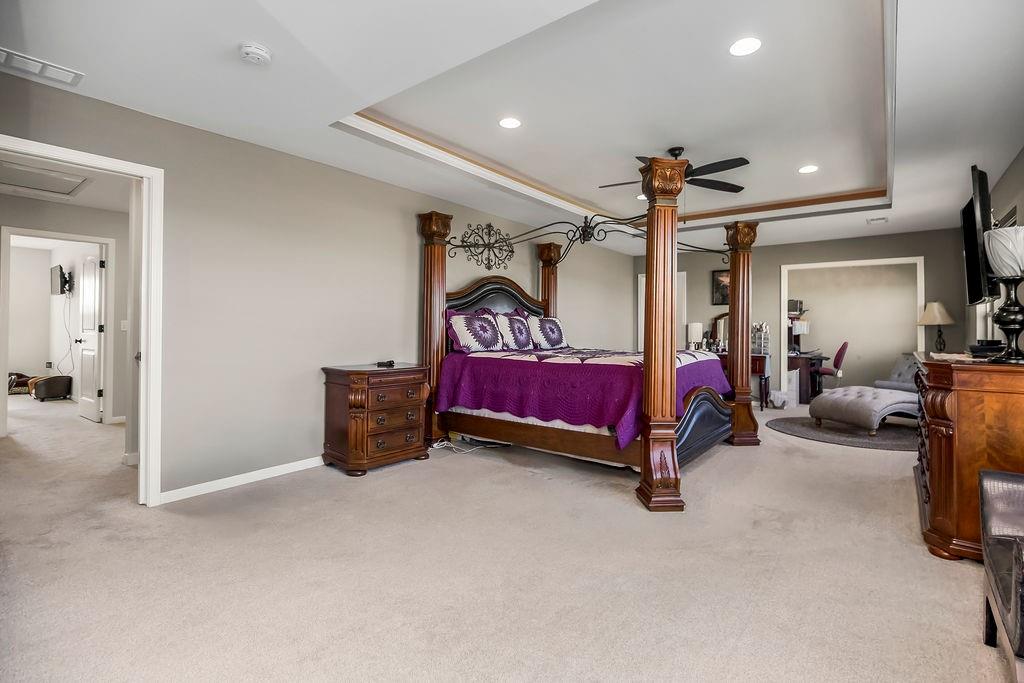 ** 3% assumable loan that YOU can take over! You will fall in love with this exquisite 4 bed/ 3.5 Bath --on walkout lot. Gourmet kitchen with the most amazing pantry ever! HUGE 8’x11’ walk in pantry. French door fridge features keurig single cup coffee brewing system. “Pot filler” faucet conveniently located behind cooktop. Built in Sonic ice machine and Bosch coffee and beverage center. Custom window treatments, tile and hardwood floors throughout. (Carpet in bedrooms). Spacious and luxurious owner's suite (34'x14') with 2 walk in closets, sitting area/office and tiled shower with dual shower heads. Master bath and laundry room have HEATED TILE FLOORS. Hang out with family and friends on the comfy deck with fireplace overlooking the tranquil backyard adjacent to community green space area. Finished lower level with family room and wet bar equipped with full size fridge and drawer type dishwasher. 4 car HEATED garage (2 are tandem) Professionally applied epoxy garage floor. Located in Foxberry Estates, one of the area’s most sought-after communities, residents enjoy resort-style amenities—including a pool, clubhouse, scenic walking trails, and playgrounds. **Assumable 3% mortgage available!**