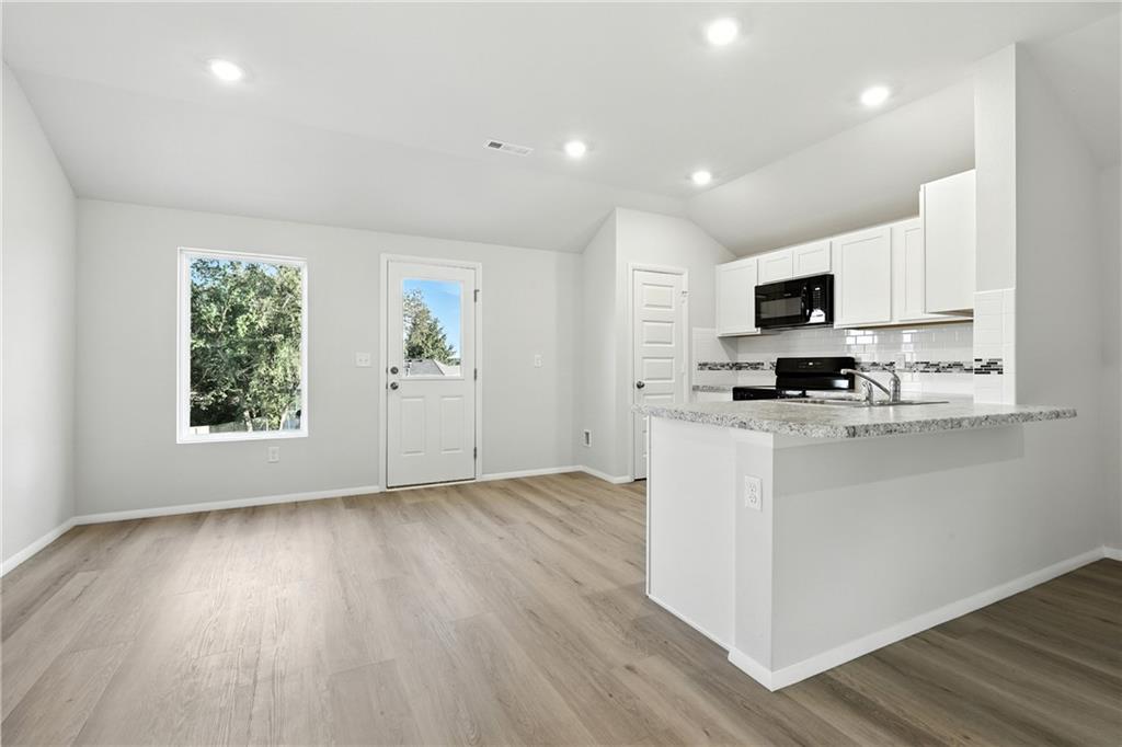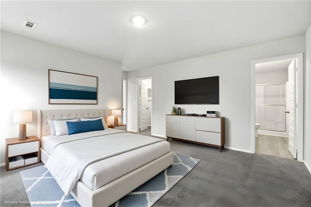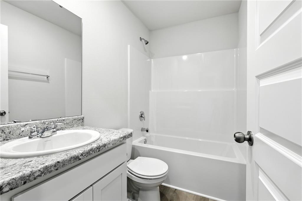 Our popular Armstrong plan is a single-story home that is host to a spacious and flexible open-concept layout shared between the kitchen, living and dining areas for simple everyday transitions and multitasking. Two bedrooms share a private hallway, while the luxe owner’s suite boasts a private location at the back of the home, complete with a full bathroom and walk-in closet. Photos are of a finished home. The floorplan is the same. The photo of the colors are the colors that will be going into the home. The additional photo of the Ice colored Quartz is going in the kitchen.