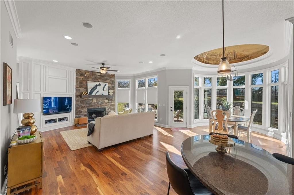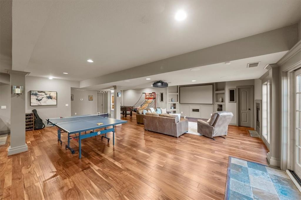 Beautiful design meets convenience and function in this architectural showpiece in the coveted Riss Lake community. With only three of these custom homes ever constructed, this Mark Bolling home will take your breath away. A hand painted mural, hidden children's nook, and 3 separate outdoor spaces, this home is truly special and not like anything you have seen at the lake. Earthy stone accent walls, beautiful wide plank walnut floors, multiple living and dining spaces and a grand kitchen make the main floor great for intimate evenings at home or perfect for entertaining. All bedrooms are spacious and privately appointed with their own en-suite baths. The owner’s suite is a true retreat, offering spa-caliber finishes including an oversized double walk-in shower and a secluded martini deck for quiet relaxation. The walkout lower level is designed to impress, featuring a full second kitchen, expansive recreation and entertainment area with a large projection screen, a dedicated workout room with sauna, and a rare suspended garage ideal for additional storage. Throughout the approximately 5,500 square feet, you’ll find custom built-ins, smart home technology by Applause Home Audio and Security, and numerous recent updates—including new carpet and new windows—enhancing both Room to spread out but a layout that still feels cozy is what makes this really feel like the perfect family home. Step outside and enjoy unparalleled access to the amenities that define Riss Lake living. Why maintain a pool when the neighborhood saltwater pool, tennis courts, and playground sit just beyond the back door, while the community’s 135-acre recreational and fishing lake is only two blocks away. Architecturally distinctive, and impeccably crafted, this home represents a rare chance to own something truly special.