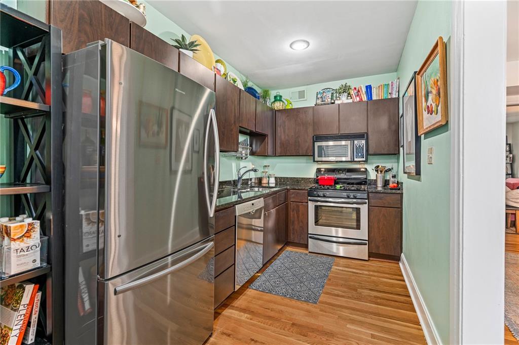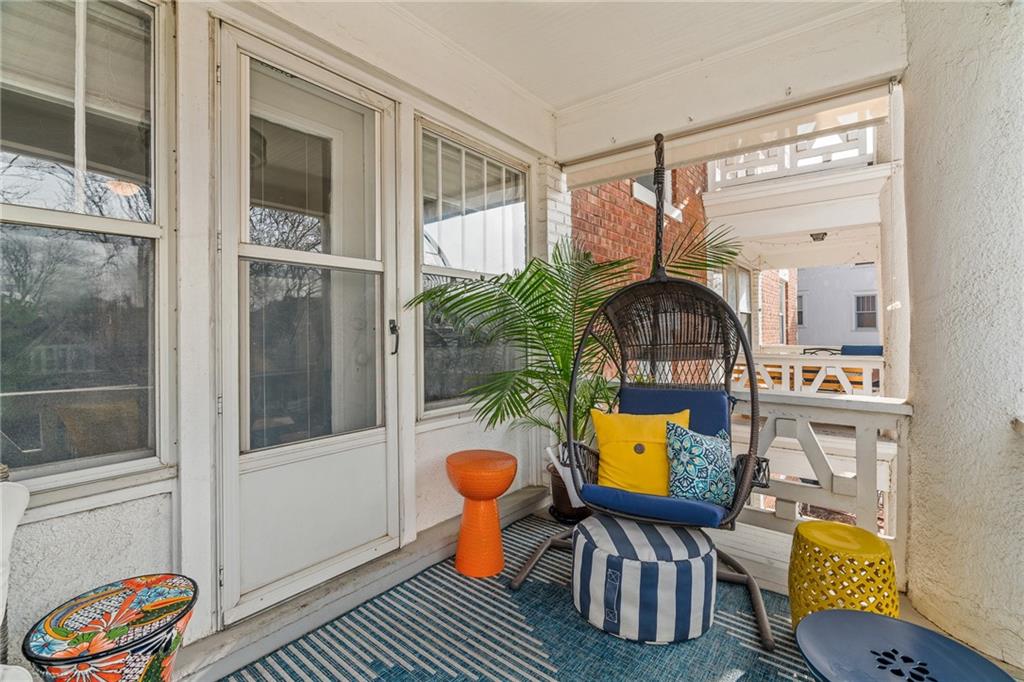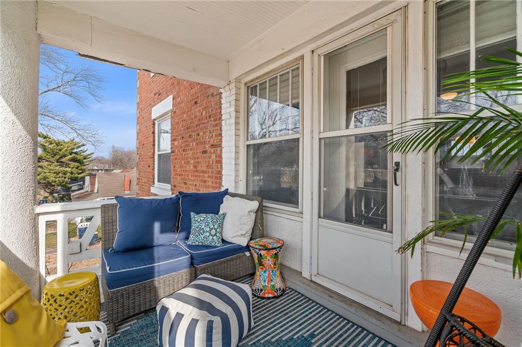 Welcome home to this charming 2-bedroom, 1-bath condo nestled in the heart of Southmoreland. Located within a gated community this home offers both privacy and convenience, complete with a rare 1-car detached garage, plus access to a community garage for dedicated bike storage. This second story walk-up unit provides both comfort and functionality. Original functioning windows add timeless character, while custom top down/bottom up blinds in all but one room provide flexible light control and privacy. The versatile bonus room located off the back porch provides the perfect space for extra storage(in addition to the basement), an office, or a creative studio-whatever suits your lifestyle. Step outside to your covered balcony, an ideal spot to enjoy morning coffee, or unwind in the evening. Enjoy unbeatable walkability with a streetcar stop just 4 blocks away. You're also within walking distance to the Nelson-Atkins Museum of Art, Kemper Museum of Modern Art, KC Art Institute, the Plaza, and Westport-placing culture, dining, shopping, and entertainment right at your doorstep. This condo offers the perfect blend of charm, location, and low-maintenance living in one of KC's most vibrant neighborhoods.