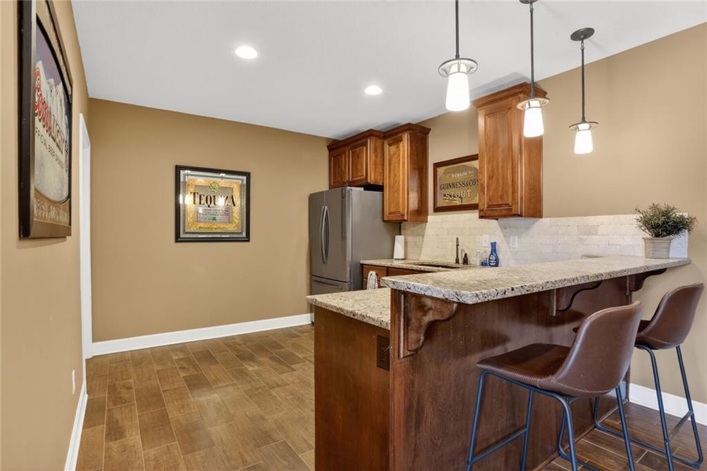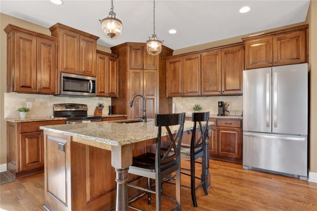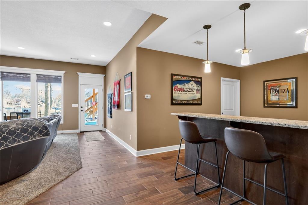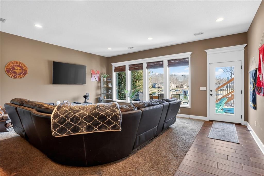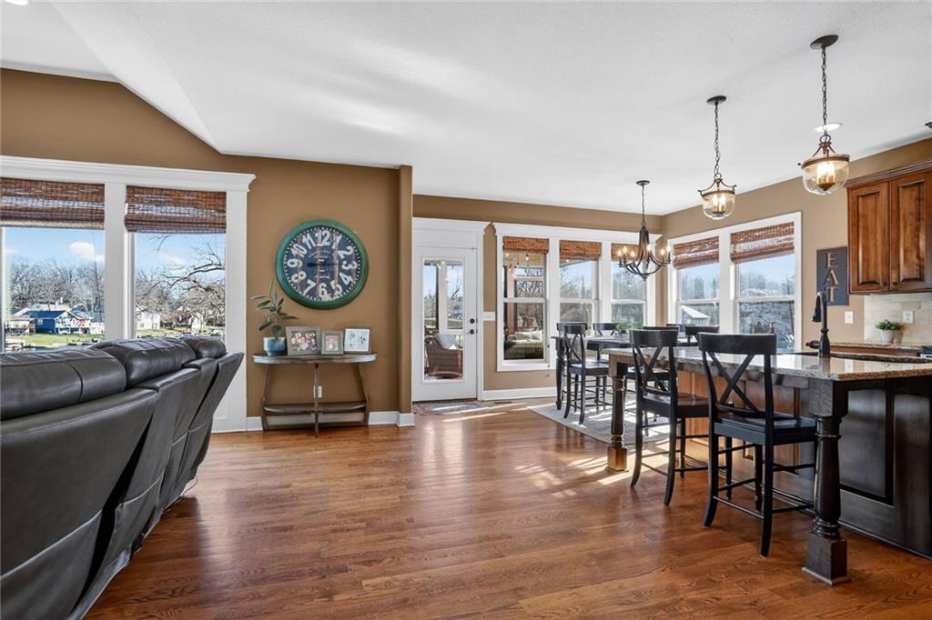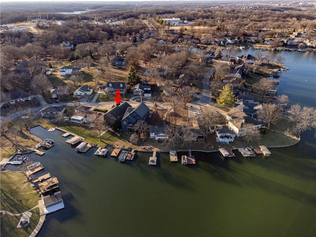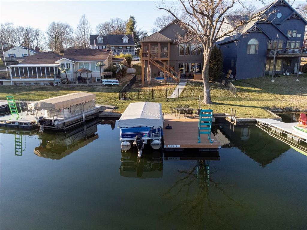 RARE FIND at Lake Tapawingo! Custom Built in 2015, this tastefully designed REVERSE RANCH with THREE CAR GARAGE is MOVE IN READY! The Spacious Entry welcomes you home and leads to the the most spectacular views of the Lake so you will never miss a sunrise or sunset. Main level has beautiful hardwood floors. Great Room with easy start Stone Fireplace has Bookcases on either side and floor to ceiling windows. You'll love the well equipped Kitchen with warm wood cabinetry, granite countertops, island and HUGE WALK-IN PANTRY. Dining area opens to a screened porch that overlooks the wide peaceful cove. Primary Suite with vaulted ceiling has spacious bathroom with walk-in shower, double vanities and walk-in closet. Uniques features on the main level include access to laundry from primary suite closet and hallway and a convenient built in desk with cabinets. A Half Bath for guests completes the main level. The Lower Level has two spacious bedrooms, full bathroom, wet bar, rec room, storage area and an Super Bonus Room with lake side access for storing your lake toys or lawn furniture, and there's a doggie door too! Fenced yard and premium outdoor entertainment area with patio, dock and amazing views of the Lake. Three car garage with bays that will accommodate a large pickup truck. There's always something to do at the Lake! Fishing, Boating, Swimming, Pickleball, Tennis, Walking Trails, Women's Club, Sportsman's Club and many community events through the year.