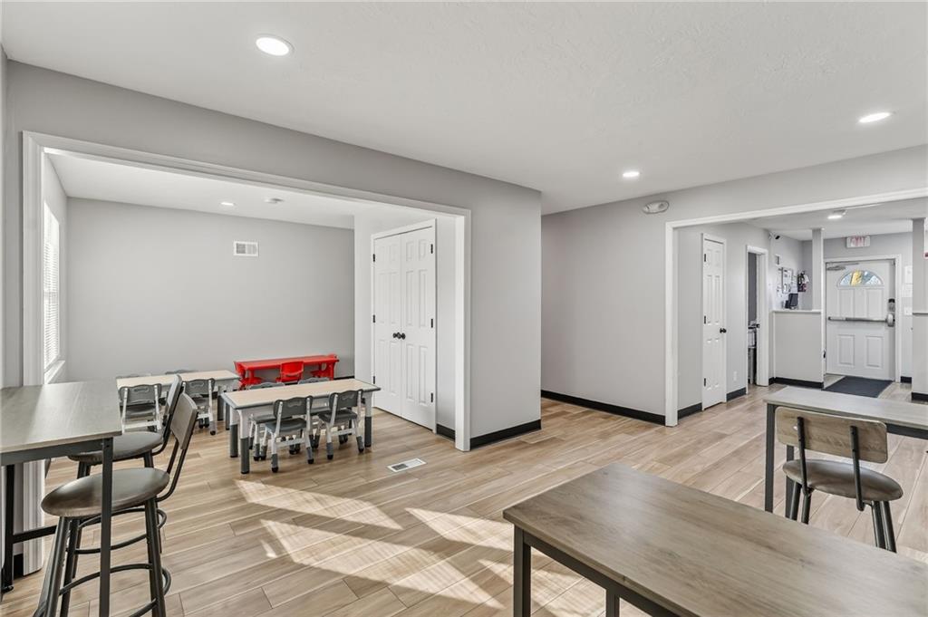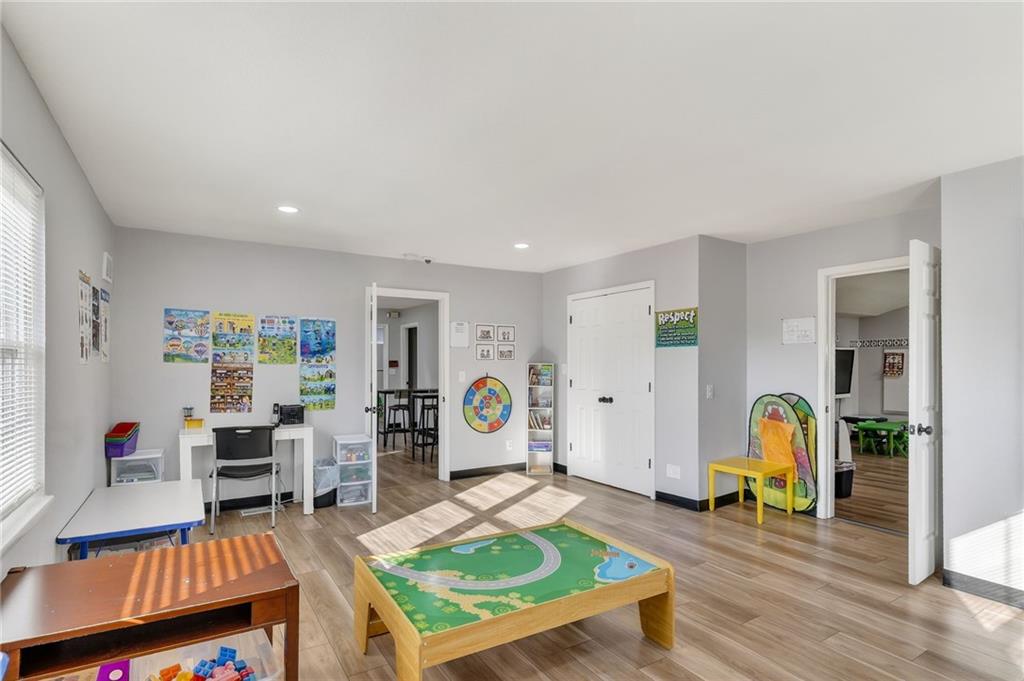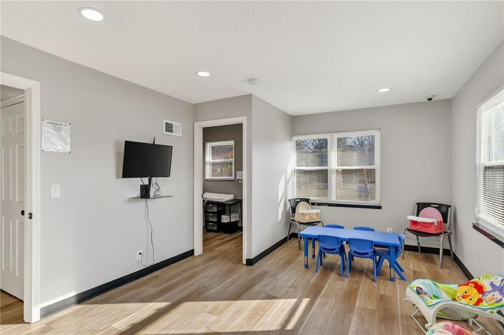 This beautifully newly remodeled daycare facility is designed to provide a safe, engaging, and nurturing environment for children. The property features a welcoming common area, three spacious and thoughtfully designed classrooms, four well-appointed bathrooms, and a dedicated administrative office to support daily operations. Additional amenities include a fully equipped kitchen, pantry, laundry room, ample storage throughout, two fireplaces, and an unfinished basement offering the potential to add additional classrooms or storage space. The facility also includes a spacious two-car garage and a vending machine for added convenience. For enhanced safety and peace of mind, the building is equipped with a security system and an interior sprinkler system. A secure outdoor playground provides ample space for active play and developmental activities. Throughout the facility, modern upgrades and child-friendly finishes create a warm and welcoming atmosphere for both families and staff. This turnkey daycare presents an excellent opportunity for operators seeking a clean, functional, and well-equipped space to support a growing childcare program.