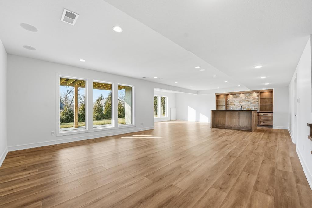 Introducing the Santa Rosa by McGraw Homes. Stunning 3,605 sq ft new construction home offering a seamless blend of modern elegance, thoughtful design & exceptional craftsmanship. Wide-plank HW floors, soaring ceilings w/exposed wood beams & abundant natural light create a warm, inviting atmosphere. The heart of the home is a show-stopping gourmet kitchen ideal for everyday living & entertaining, featuring an oversized island w/stone countertops, striking two-tone cabinetry, custom wood vent hood, designer lighting, custom cabinets & high-end appl incl dbl ovens. Spacious WIP & prep kitchen offer exceptional storage & functionality w/custom pull-outs, built-ins & expansive counters. Add’l beverage bar completes the space. Kitchen flows into dining & living areas highlighted by a floor-to-ceiling stone FP w/black tile accents, custom built-ins & indirect lighting. Oversized bi-fold sliding doors flood the space w/natural light & lead to a covered deck w/wood-planked ceiling—perfect for outdoor living. Primary suite is a true retreat w/tray ceiling, plush carpet & serene natural light. Spa-like BA features large tiled walk-in shower w/glass enclosure, dual vanity w/custom cabinetry & designer fixtures. WIC includes custom shelving, built-ins & abundant hanging space. Finished LL expands living space w/ wide-plank flooring, recessed lighting, surround sound & stunning custom wet bar. Large rec/family area, add’l BR & full BA create an ideal guest or entertaining space. Ample unfinished storage completes the LL. Designer finishes & elevated lighting throughout combine style, comfort & exceptional quality. This Maintenance-provided community includes lawn care, snow removal & trash/recycling, available amenities feature 3 pools, fitness center, pickleball/tennis courts & clubhouse—ideal for LOW-MAINTENANCE living.