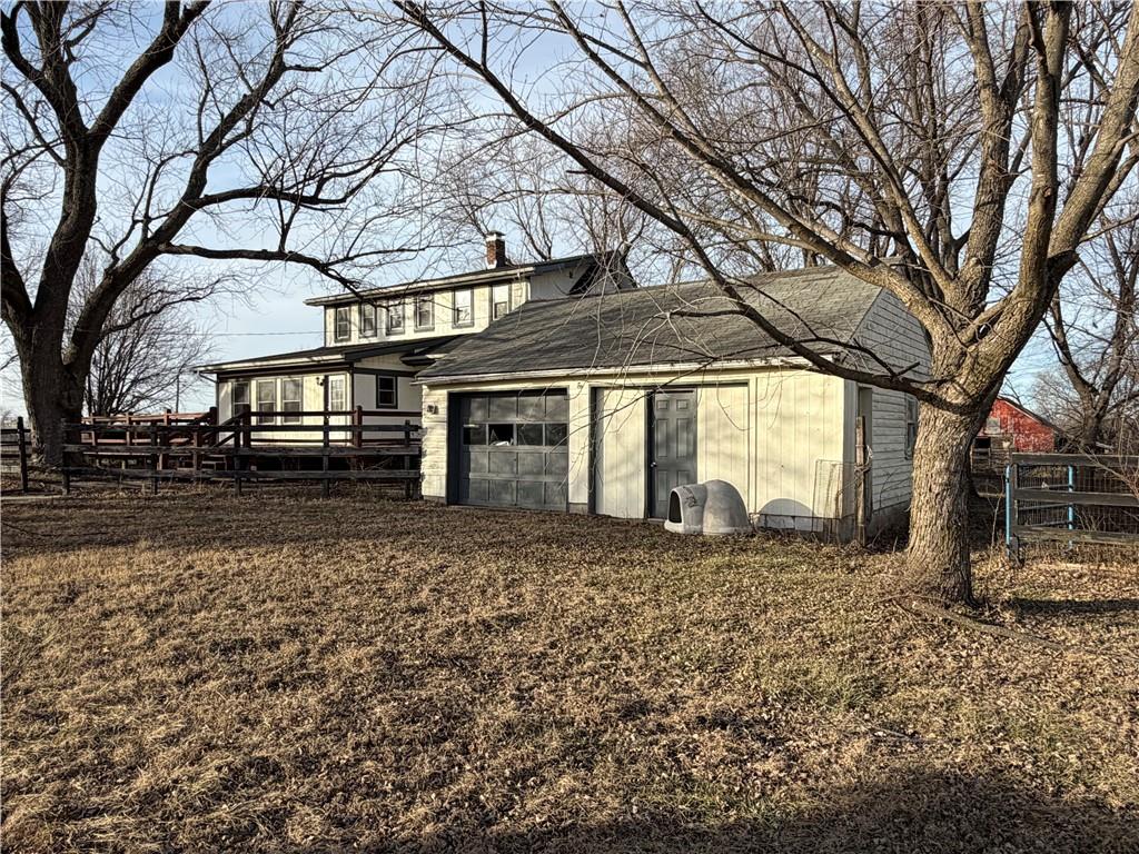 - Welcome to 21709 E 321st Street, Harrisonville, MO, where peaceful country living meets convenience. Situated on 5 beautiful acres on a corner lot, this property offers space, privacy, and opportunity with multiple outbuildings, two grain bins, and a scenic landscape filled with a wide variety of mature trees. The home itself is a classic older farmhouse full of character and charm, featuring a covered front porch, a large back deck, and solid bones throughout. While the home will require a full cosmetic update, it feels structurally rock solid, making it an excellent candidate for renovation, restoration, or modernization to suit your vision. The acreage is thoughtfully sprinkled with multiple buildings, offering flexibility for storage, workshops, hobbies, livestock, or future expansion. Enjoy the serenity of rural living with the added benefit of easy access to the city, making this property ideal for buyers seeking space, and privacy. This is a rare opportunity to own acreage with character, and upside-bring your vision and make it your own.