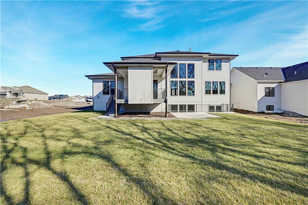 This home is complete and ready to be made into a home! Open Daily! The "Woodland" Modern 1.5 Story by JFE Construction is here on a Daylight Lot backing to trees and trail! As you enter the foyer with a soaring ceiling you are greeted by an exquisite grand staircase open to the 2nd level. Stunning 2 story windows in the Great Room with ample natural light with views of the back yard to trees. Cozy up to the fireplace in the Great Room. Kitchen boasts a expansive island, chef's dream, walk-in pantry and walkout your slider doors to your covered exterior living space with another fireplace! Primary En-Suite behind the Great Room with separate vanites, standalone spa tub, walkin closet & even more natural light. Behind the kitchen you'll find your additional bedroom on the main or office, full bath, full laundry room next to boot bench off the interior garage door. Up to the 2nd level you have 3 more bedrooms all with walk-in closets, 1 with Jack & Jill bath, 1 with it's own bathroom next to the Loft. All in the coveted Heritage Ranch, A Lambie-Rieke Community, with Amenities Galore such as state-of-the-art pool, clubhouse, trails, pickleball. play area, half-court basketball, Putting Green & ponds and so much more coming soon! This community provides a wonderful lifestyle and right next to the 1,238 Acre Heritage Park with Dog Park, Sports Parks, Golf, Lake, Trails and so much more! Contact Onsite Agents Katie Fisher and Mark Marati for Estimated Completion of homes on site, and design selections. Renderings &/or images may show features and sq ft that are subject to change. Lot 33. View this beautiful home today! Welcome Home to Heritage Ranch - one of the last NEW Home Communities in Johnson County!