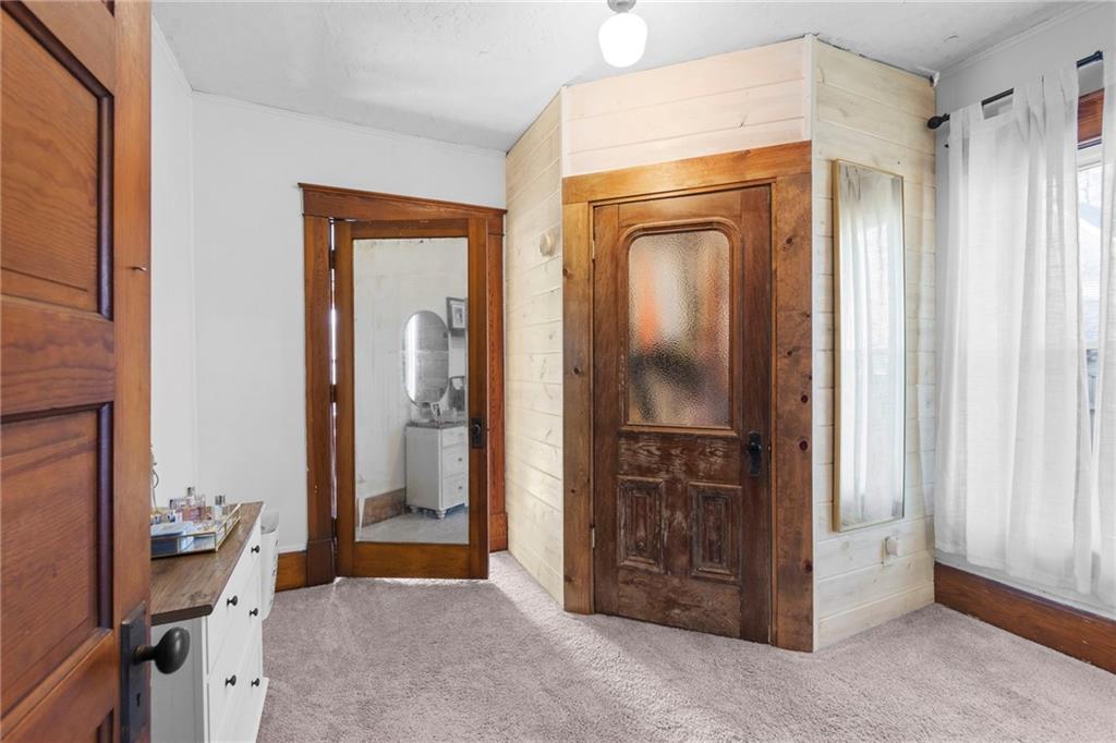 Timeless character meets modern comfort in this beautifully preserved 1923 Craftsman bungalow, rich with the charm and integrity that define homes of this period. From the moment you step inside, you’ll appreciate the stunning original woodwork, including crown molding, built-ins, classic colonnades, heavy five-panel wood doors, and a charming window seat in the formal dining room. Gorgeous wood floors flow throughout the main living spaces, adding warmth and authenticity. The main floor offers two bedrooms, one full bathroom, a formal dining room, and a functional mudroom with laundry. The updated kitchen provides modern convenience while remaining in harmony with the home’s historic character. Upstairs, you’ll find a third bedroom and a full bathroom, creating a versatile space that would make a wonderful primary suite, private retreat, or bonus room. The enclosed front porch is filled with natural light from sunny windows on all sides, making it an ideal sunroom, plant room, or additional living space. Outdoor living continues with a new rear deck, perfect for relaxing or entertaining. A detached two-car garage and carport provide ample parking and storage. A new roof installed in 2023 adds peace of mind. This special home is a rare opportunity to own a true Craftsman bungalow where original details have been lovingly maintained while modern updates enhance everyday living.