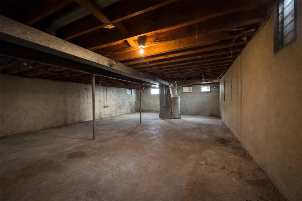 Basement with gas water heater and heating unit