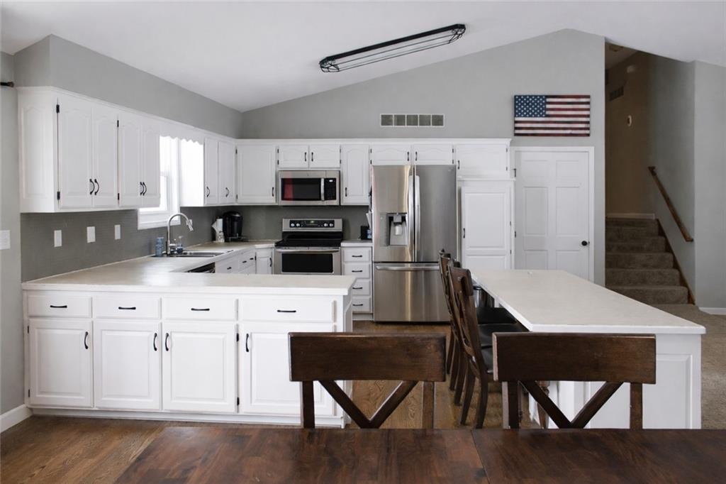 Spacious home offering approximately 3,200 finished square feet, a finished basement with wet bar, and a rare three-car tandem garage in the established King’s Suburban Estates neighborhood. The open layout features high ceilings and comfortable living areas with two fireplaces that create a warm, inviting atmosphere. The finished basement offers additional living and entertaining space, while the non-conforming fourth bedroom currently set up as a salon with sink and running water provides flexibility for a home office, hobby room, or guest space. Outside, enjoy a fenced backyard and deck perfect for relaxing or entertaining. Convenient access to the Rainbow Trail offers an easy way to enjoy walking paths that connect toward town and the Fit Park.
