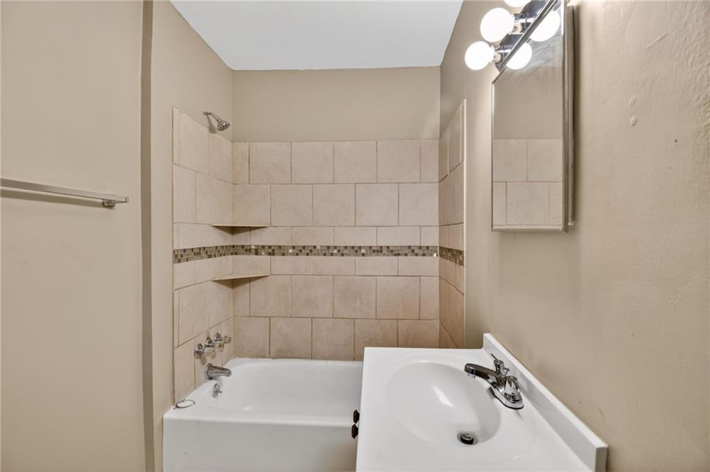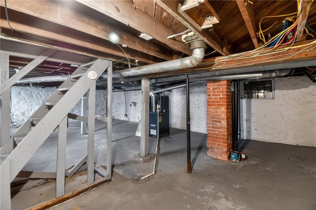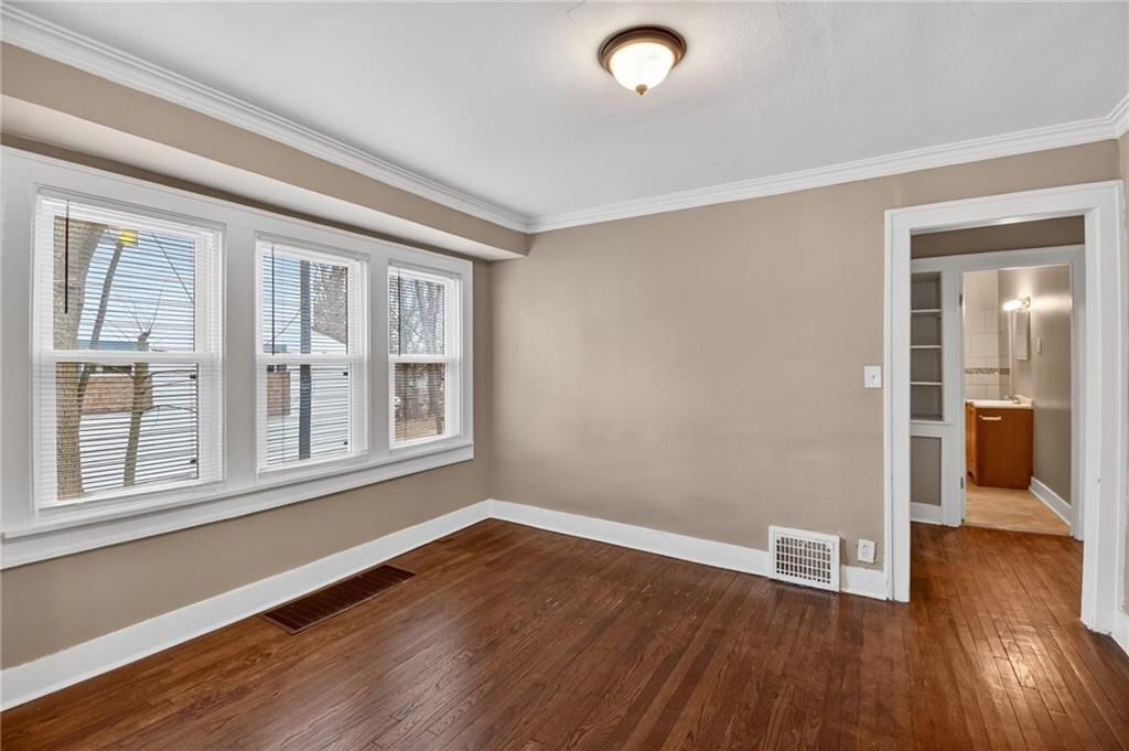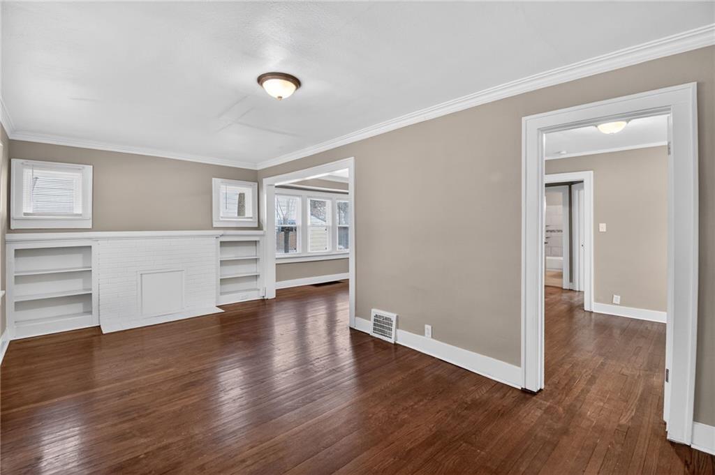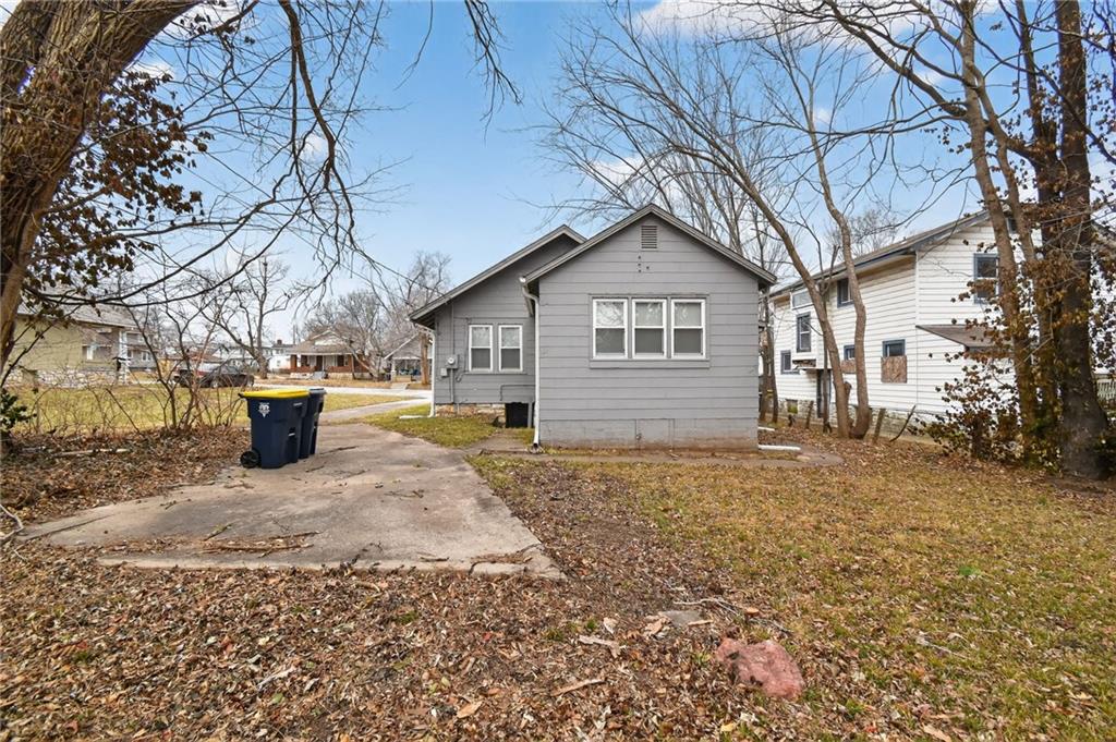 This charming bungalow blends classic character with modern touches, featuring a welcoming front porch and a spacious driveway with ample off-street parking. Inside, rich wood-style flooring and neutral tones create a warm, inviting atmosphere throughout. The living room offers built-in shelving and abundant natural light, flowing into a bright dining area. The kitchen is equipped with white cabinetry, granite-look countertops, and tasteful black appliances. Three comfortably sized bedrooms offer flexibility, while the full bathroom showcases tiled walls and a decorative inlay. A full unfinished basement provides generous storage or workspace potential. Set on a deep lot with a partially shaded backyard, this home offers both indoor comfort and outdoor space to enjoy.