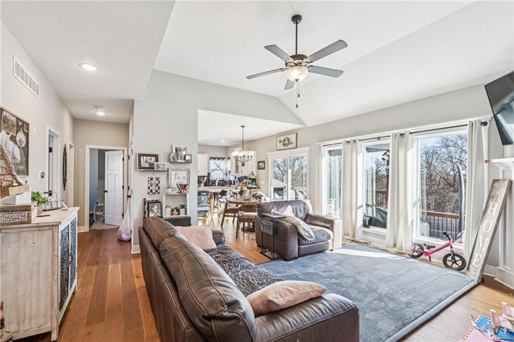 Beautifully maintained, only 6-year-old split-entry home in Liberty! This 3-bedroom, 3-full-bath property offers an open and inviting layout with wood flooring throughout the kitchen and dining area, complemented by granite countertops. Each bathroom features tile flooring and tile shower surrounds for a clean, modern feel. Enjoy outdoor living in the large backyard with a covered deck and patio—perfect for entertaining or relaxing. Conveniently located with easy access to local amenities, this home combines modern finishes with comfortable living.