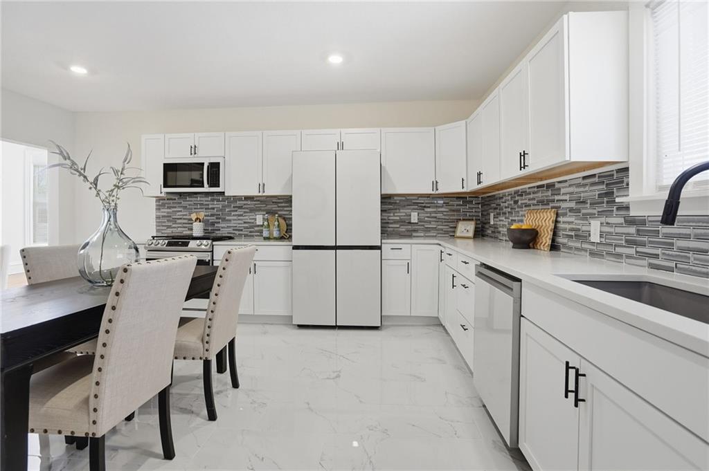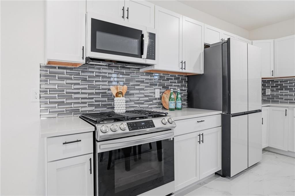 Step into comfort, efficiency, & small-town charm in this extensively renovated 5-bedroom, 2.5-bath home designed for modern living. From the moment you arrive, you’ll appreciate the thoughtful improvements throughout—starting w/ paid-off solar panels that help reduce monthly utility costs and add long-term value. The heart of the home is the fully remodeled kitchen, where new cabinetry, quartz countertops, new hardware, tile flooring, and a new sink come together with all appliances included—refrigerator, gas range/oven, dishwasher, microwave, upright freezer (not brand new), and washer and dryer—making this home truly move-in ready. Fresh interior and exterior paint, along with new sheetrock, updated electrical, and new plumbing, provide peace of mind, while the original hardwood floors on the main level have been professionally re-stained, blending timeless character with modern updates. The main level offers exceptional functionality, featuring a newly added half bath, a new laundry room conveniently located off the kitchen, and a main level primary suite with a beautifully tiled shower and dual vanities. A second main-level bedroom includes new carpet, ceiling fan, and three IKEA-style wall closets, perfect for flexible living or home office needs. Upstairs, you’ll find three additional bedrooms, all with new carpeting and ceiling fans, along with a newly added full bathroom, creating comfortable spaces for family or guests. Outside, the newly paved 100-foot asphalt driveway provides ample parking and plenty of room for a future garage or outbuilding. Located in the welcoming small-town community of Wellsville, Kansas, this home offers the best of both worlds—quiet hometown living with quick access to Interstate 35, making commutes to the Kansas City metro area, Olathe, and surrounding communities easy and efficient. Extensively updated, energy-efficient, and move-in ready—this is a home you can feel good about from day one.
