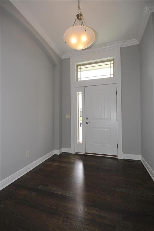 Welcome to the Sierra reverse floor plan by Hoffmann Custom Homes! The main level features a private home office, half bath, and an open living room and kitchen with nine-foot ceilings, an oversized quartz island, white enamel cabinetry, and under-cabinet lighting. The primary suite is conveniently located on the main level with a private ensuite. The finished lower level offers two additional bedrooms, a spacious family room, and a wet bar—perfect for entertaining or relaxing movie nights. Built with durable 2x6 construction, this home also includes a three-car garage, covered patio, sprinkler system, and a 10-year structural warranty. Home is move in ready! Photos are stock images of the plan; finishes may vary.