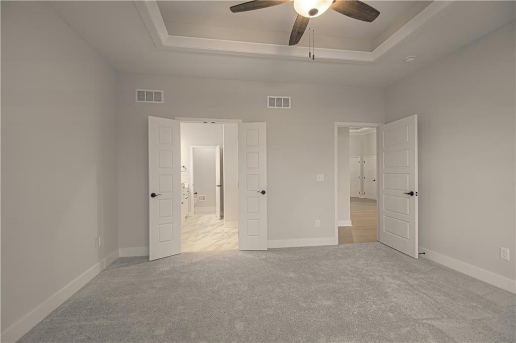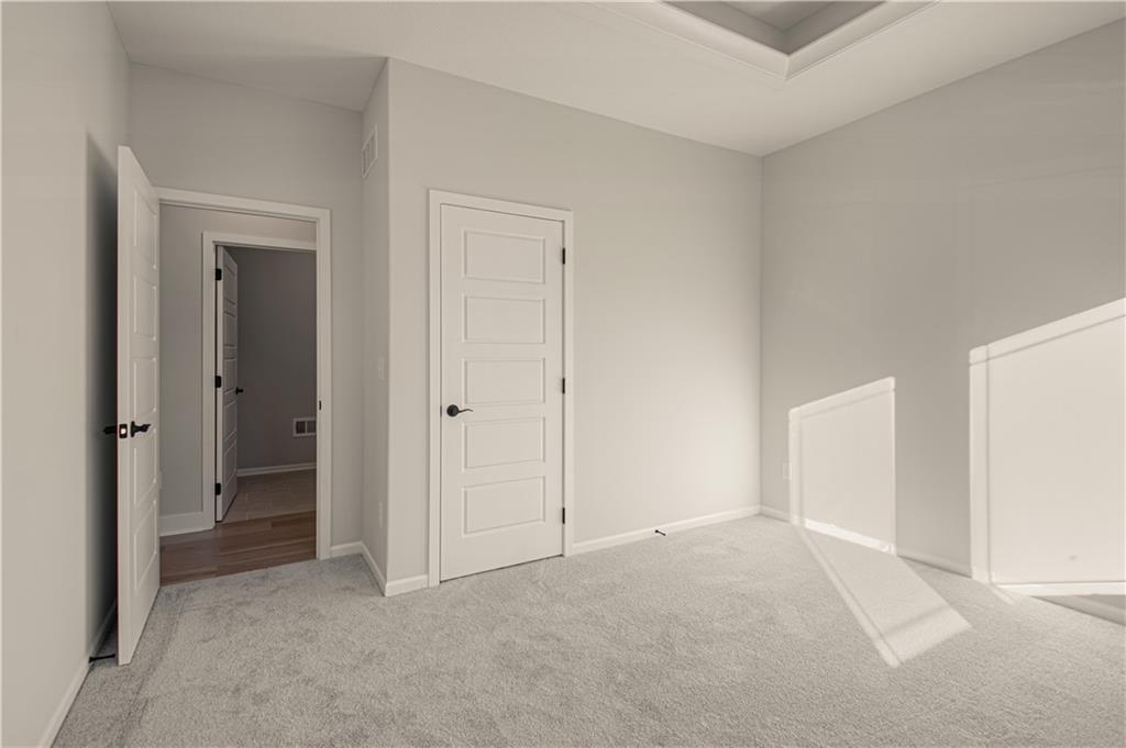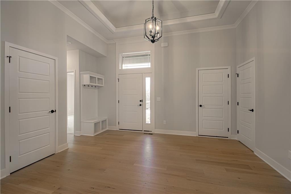 Welcome to the Richmond, a beautifully crafted ranch floorplan by Hoffmann Custom Homes, situated in the highly sought-after Platte County School District. Designed with both style and function in mind, this thoughtfully planned floor plan offers true main-level living with a private primary suite featuring an ensuite bath, along with two additional generously sized bedrooms and a full bathroom. The entryway opens to a spacious great room with soaring ceilings, creating an inviting and open atmosphere. The open-concept kitchen is a standout, showcasing creamy white enameled cabinetry, fresh modern lighting, under-cabinet lighting, a walk-in pantry, and a large island topped with light quartz—perfect for everyday living and entertaining alike. Just off the dining area, a covered deck provides convenient access to outdoor living. Additional main-level features include beautiful engineers hardwoods, a laundry room, coat closet, and a functional drop zone, offering ample storage and organization. Built with 2x6 exterior wall construction, this home is engineered for durability and enhanced energy efficiency. It comes pre-wired for future solar panels, includes an EV charger receptacle, and features additional energy-efficient upgrades throughout. A 10-year structural warranty adds peace of mind. The lower level is stubbed for a future bathroom, allowing flexibility for future expansion or customization. This home seamlessly blends quality craftsmanship, modern finishes, and forward-thinking efficiency in an exceptional location. This home is finished are ready for you to move in!
