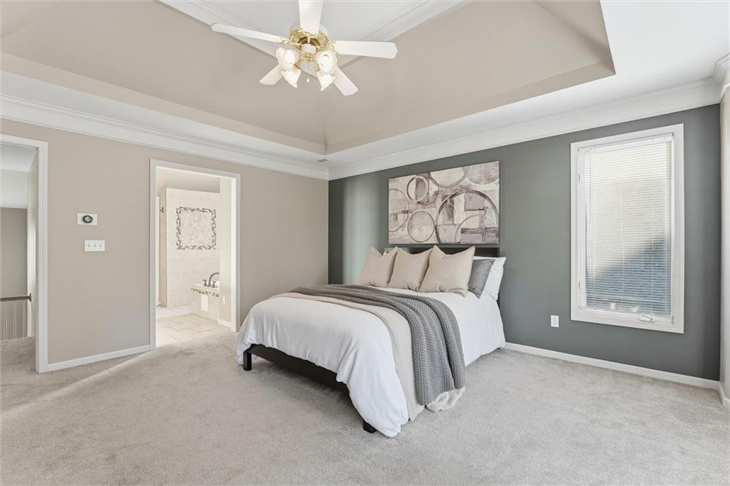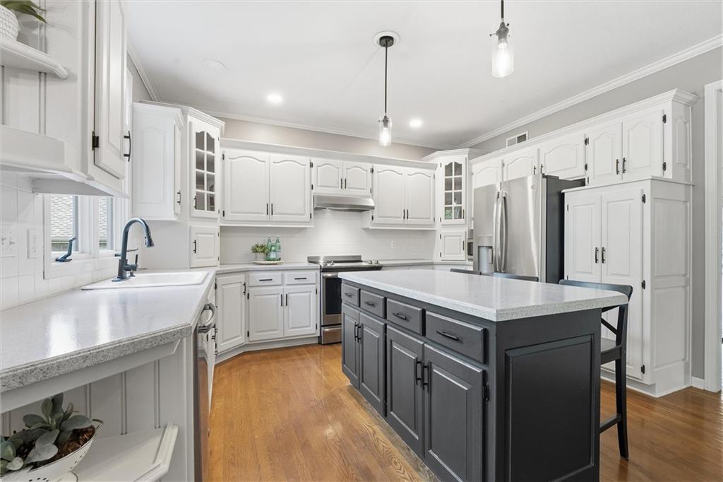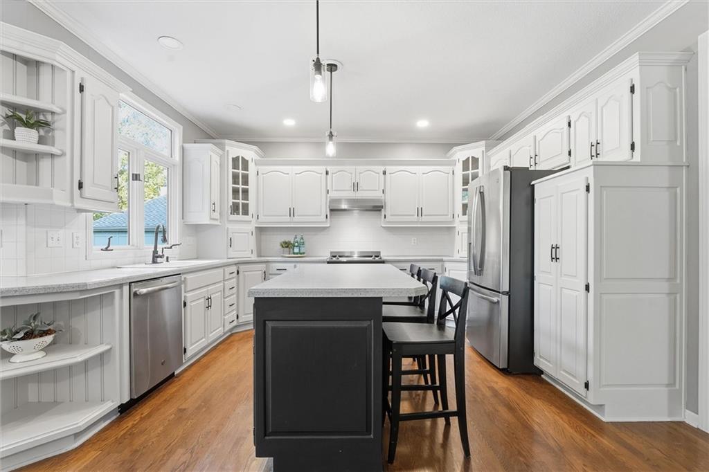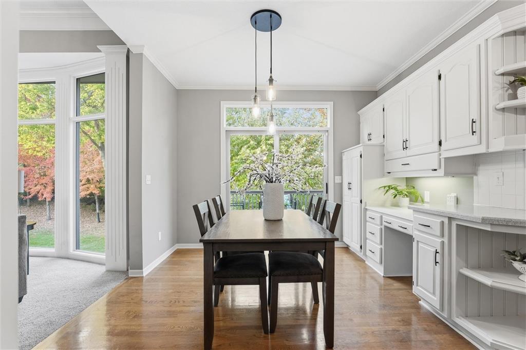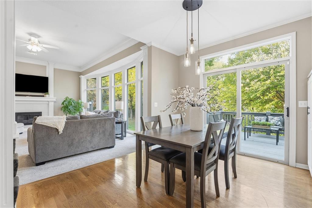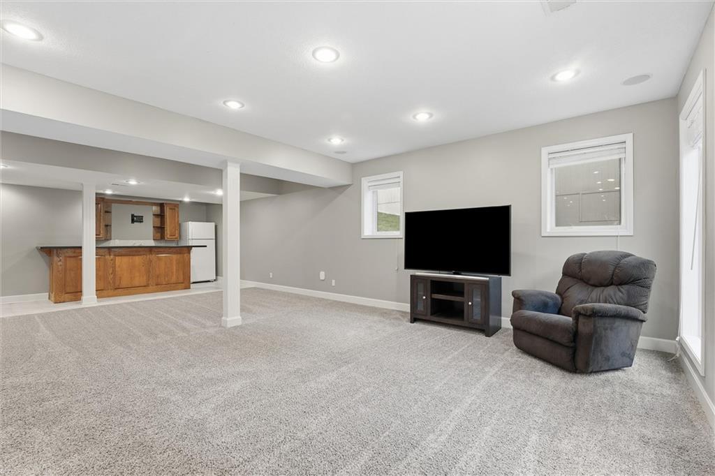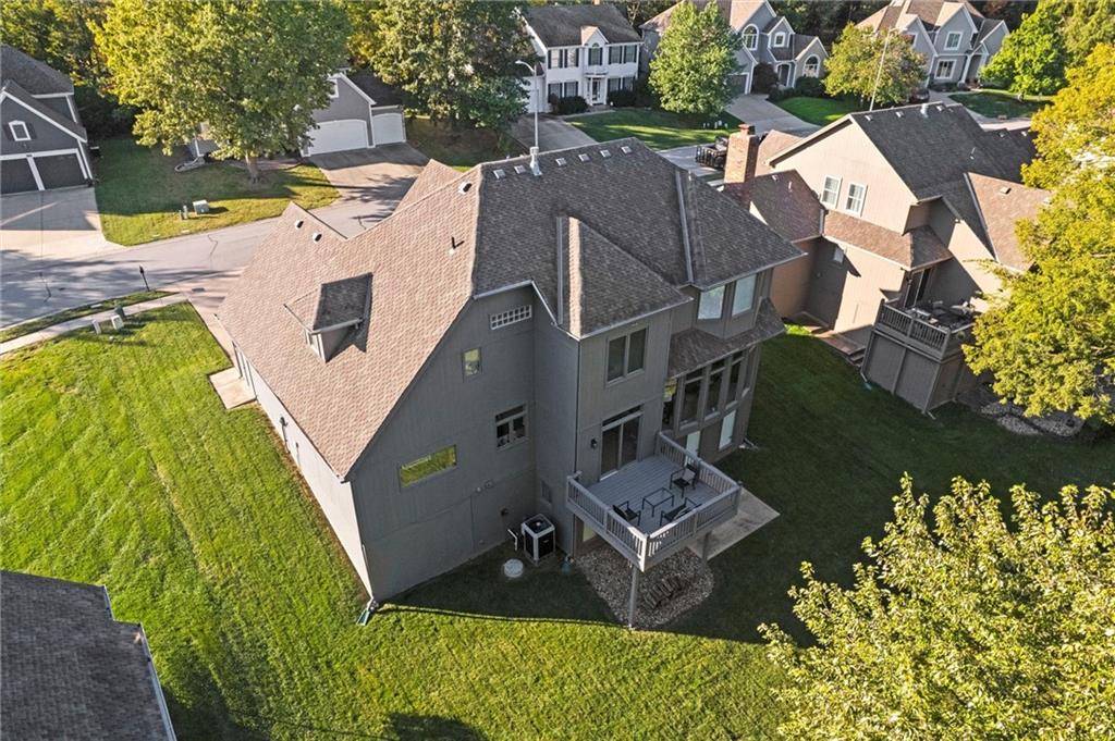 Beautifully Updated 2-Story in Coveted Riss Lake! Perfectly positioned on a quiet cul-de-sac, this home offers the ideal blend of comfort, style, and thoughtful updates throughout. The main floor features an open layout with seamless flow between living, dining and kitchen spaces. The living room features a cozy fireplace and tons of natural light from the floor-to-ceiling windows. The spacious kitchen offers wrap-around counters and cabinetry, a large island, built-in hutch, and an open dining area that leads out to the upper deck — perfect for entertaining. The main floor is completed by a formal dining room, private home office, and a convenient laundry room just off the garage, thoughtfully designed for everyday ease. The upstairs primary suite enjoys its own elevated, private level and includes a walk-in tiled shower, jetted tub, and dual vanities. Each of the three secondary bedrooms includes a walk-in closet and convenient bathroom access, with one offering a private ensuite and the other two sharing a Jack-and-Jill bath. Designed for entertaining, the finished lower level features a spacious family room with fireplace and custom built-ins, open rec space, and a wet bar. A full bath and walk-out access to the patio and tree-lined backyard complete this beautiful extension of the home. Additional highlights include a 3-car tandem garage and beautiful mature trees surrounding the property. Enjoy the exceptional Riss Lake community with lake access, pools, tennis courts, and trails — all from a peaceful cul-de-sac location.