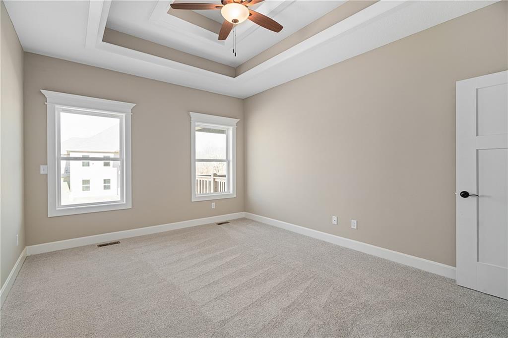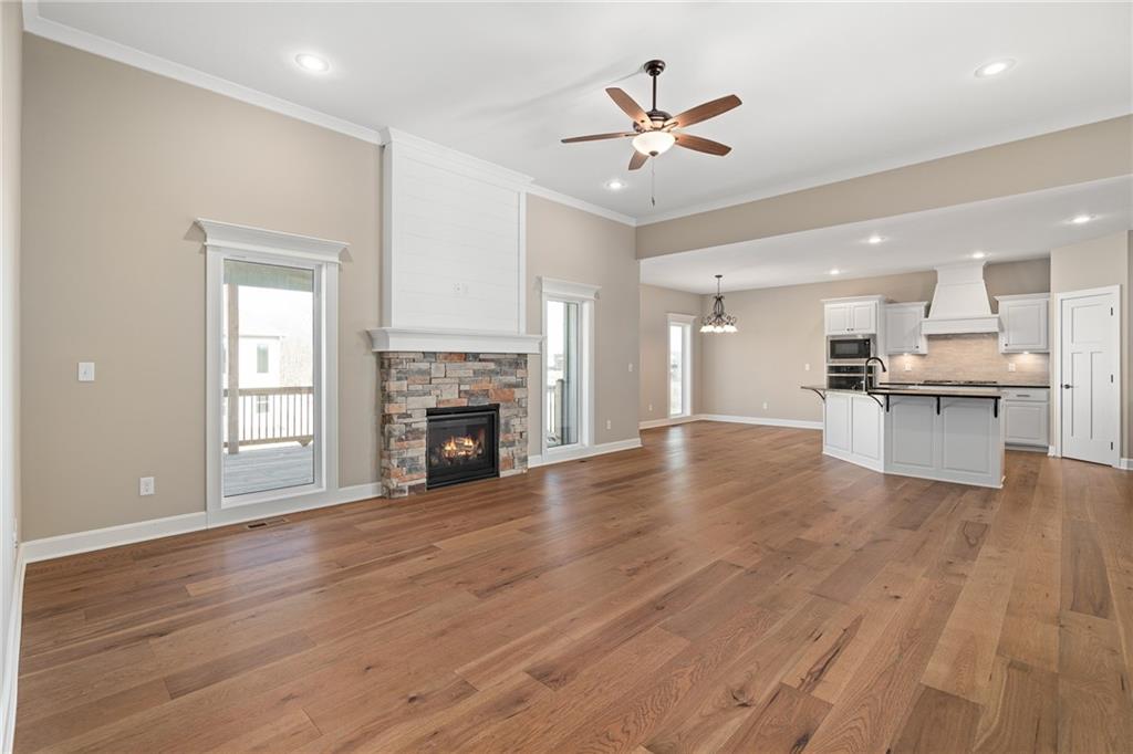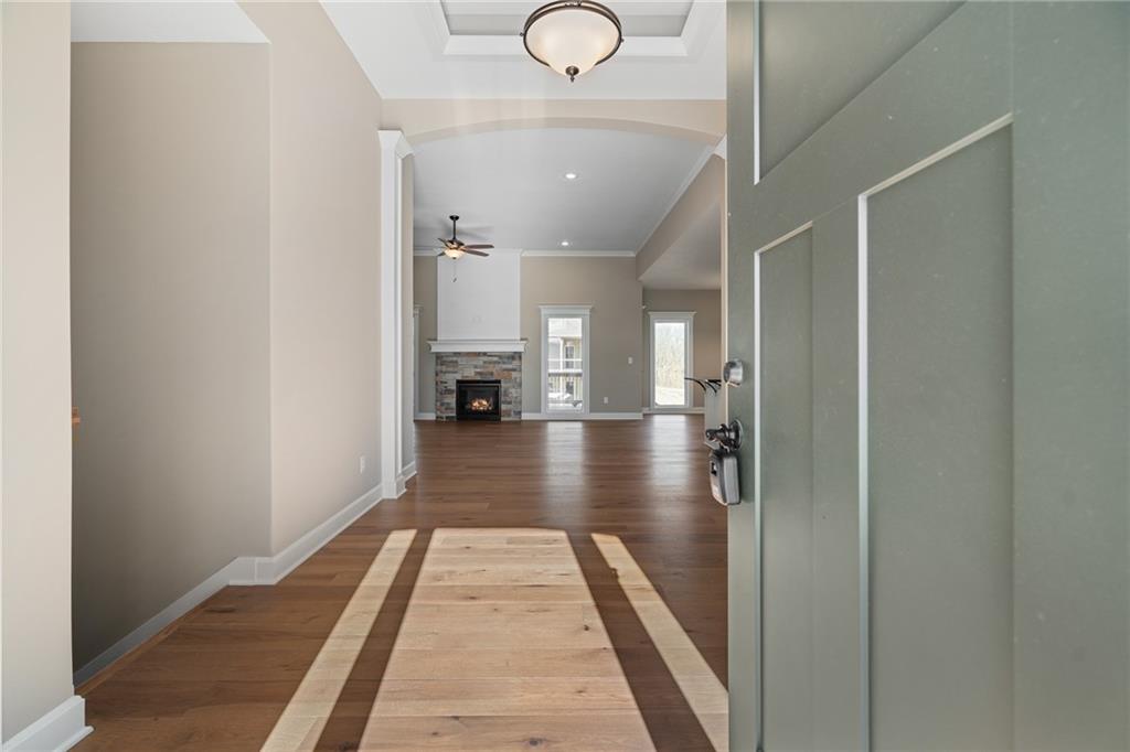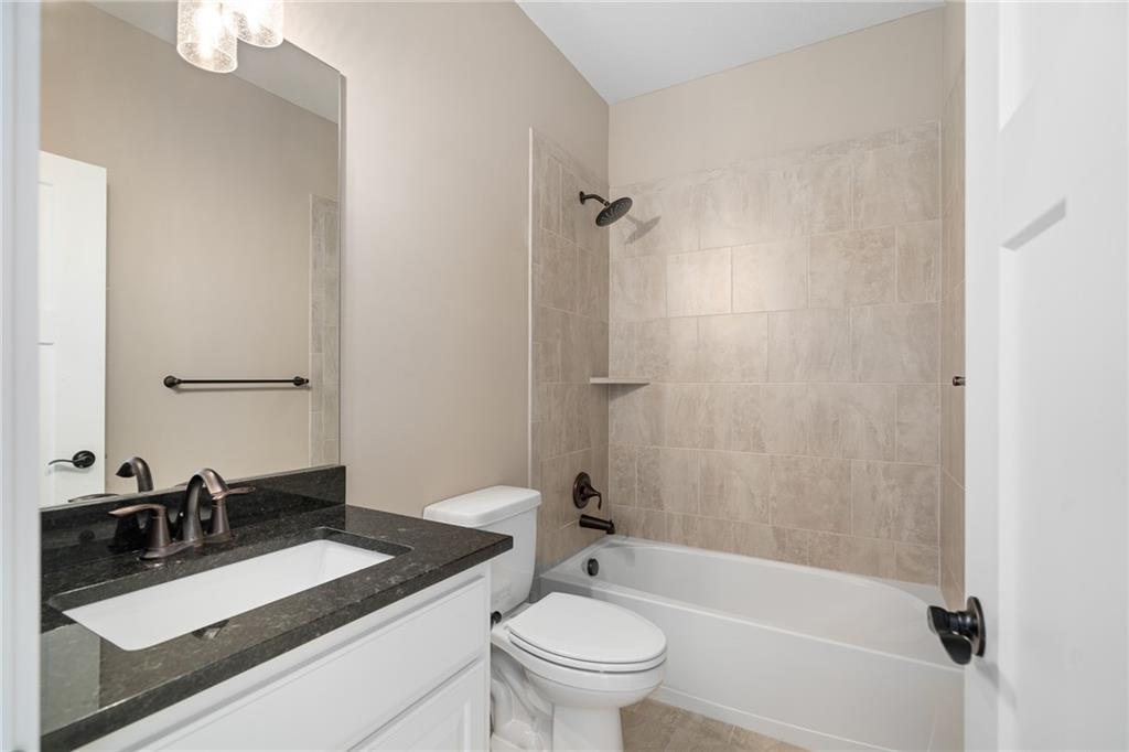 Welcome to Sara’s Meadow, an exciting new subdivision and home to The Drake by Hoffmann Custom Homes — a beautifully designed Reverse 1.5 Story that blends warmth, modern style, and smart construction. From the moment you walk in, this home is filled with natural light, soaring ceilings, and refined finishes throughout. The main level features gorgeous honey-colored engineered hardwood floors and a chef-inspired kitchen showcasing light, black granite countertops, dark hardware, a gas cooktop and wall oven, enameled cabinetry, and under-cabinet lighting that makes the space shine — perfect for those who love to entertain! The great room is anchored by an eye-catching stone fireplace with enameled wood trim accents and opens seamlessly to the covered deck, ideal for relaxing. The main-level owner’s suite truly feels like a private retreat with a freestanding soaker tub, double vanities, and a generous walk-in closet. A second bedroom on the main floor makes the perfect nursery, home office, or guest space, along with a full bath and a conveniently located laundry room. Downstairs, the finished walkout lower level adds even more space with two additional bedrooms, a full bath, and a spacious rec room complete with a granite wet bar — plus walkout access to a covered patio and an oversized backyard that feels both peaceful and private. Thoughtfully engineered for modern living, this home includes 2x6 exterior wall construction, is prewired for solar panels, offers EV charger compatibility, energy-saving features, and comes backed by a 10-year structural warranty. If you’ve been waiting for the perfect blend of style, quality, luxury, comfort, and location — you need to come experience “The Drake” in Sara’s Meadow. This one is a showstopper!