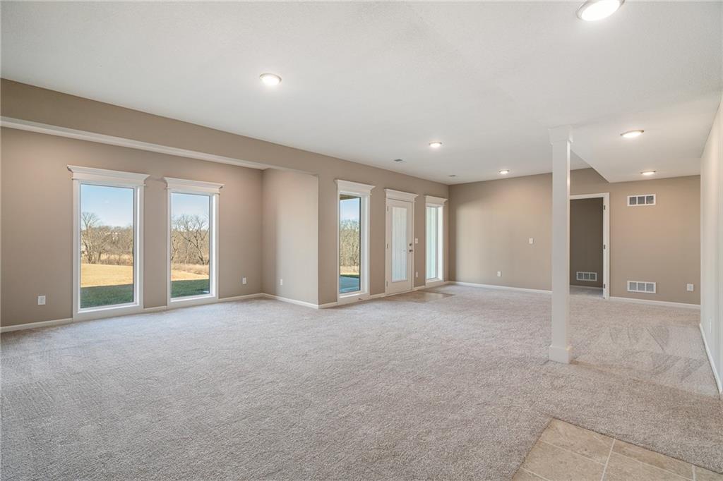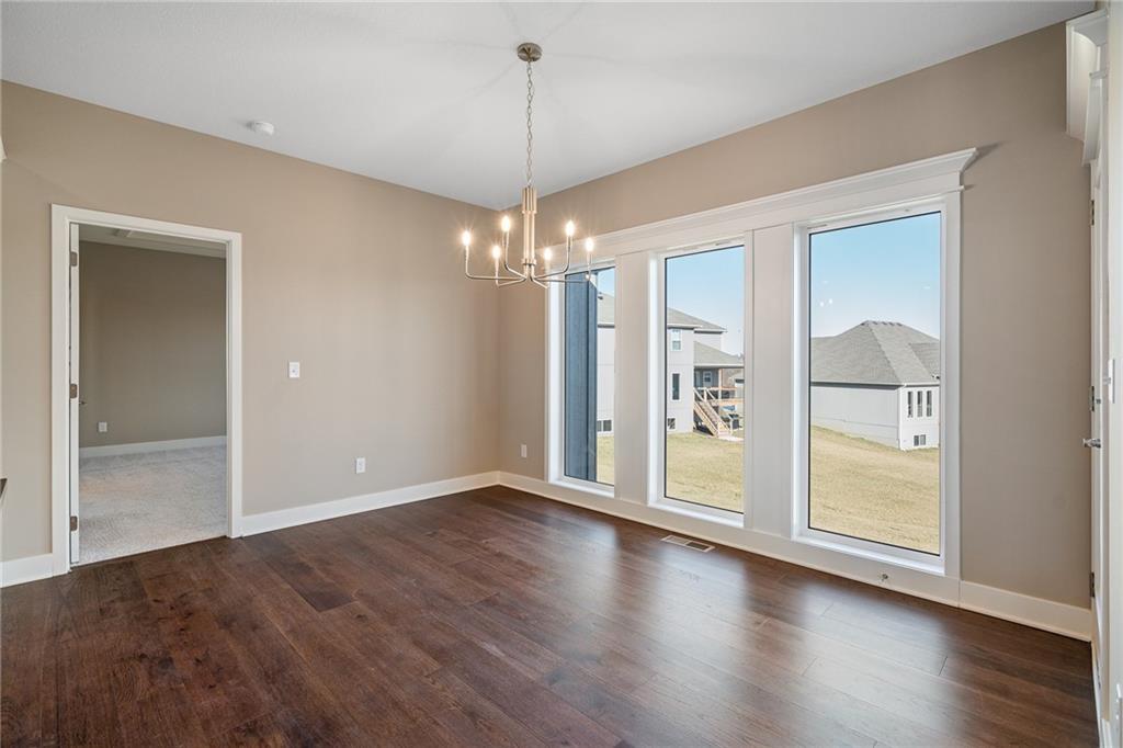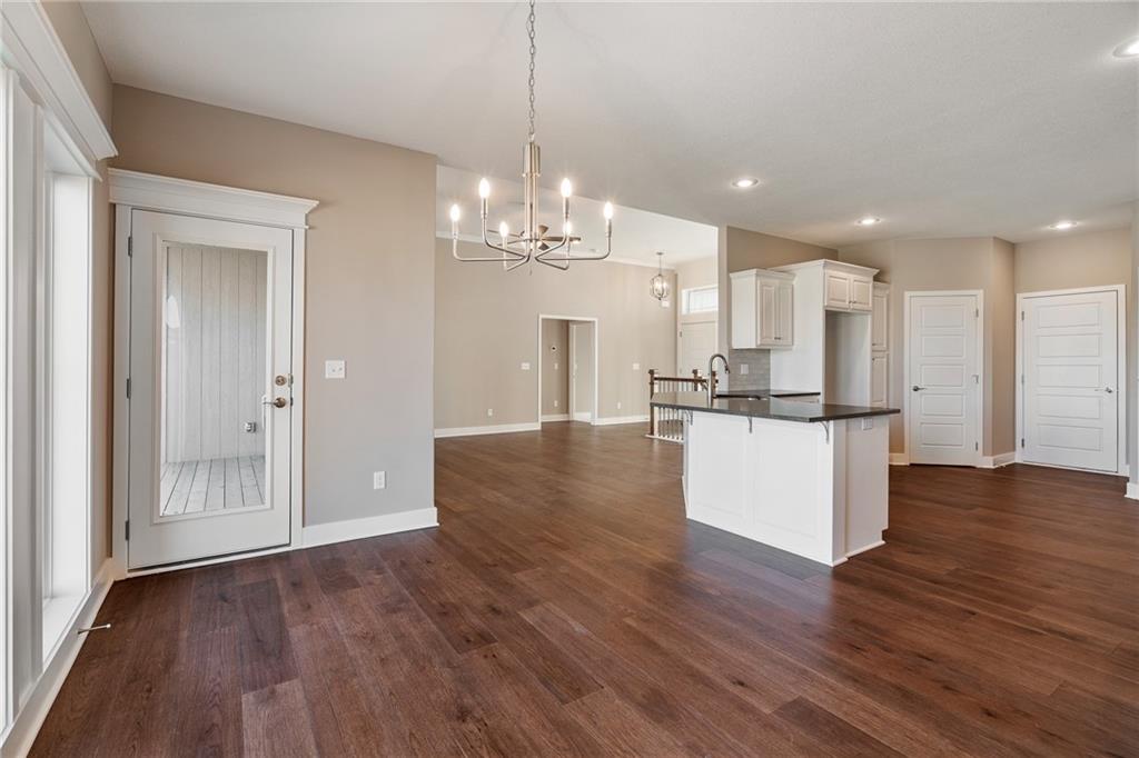 Welcome to Sara’s Meadow, an exciting new community where fresh construction meets timeless style. Introducing The Jordan by Hoffmann Custom Homes — a new gorgeous ranch style reverse 1.5 Story offering 4 bedrooms, 3 full baths, and a finished lower level, all wrapped in quality craftsmanship and smart modern design Step inside and you’ll immediately notice the difference — sunlight pouring in, soaring ceilings, and refined finishes that feel both elevated and welcoming. The main level is designed for effortless living and entertaining with rich espresso-toned engineered hardwood floors and a standout kitchen featuring black granite countertops, polished nickel finishes, a gas cooktop and wall oven, enameled cabinetry, under-cabinet lighting, and a walk-in pantry you’ll love! The spacious great room is warm and inviting, centered around a striking stone and wood fireplace that makes a statement without trying too hard. Your main-level owner’s suite is the retreat you’ve been waiting for — complete with a freestanding soaker tub, double vanities, a beautiful marble-style tiled shower, and a generous walk-in closet. Downstairs, the finished lower level adds room to spread out with an additional bedroom, full bath, and an oversized rec room with a wet bar — perfect for game nights, hosting guests, or creating your dream hangout space. Built for long-term comfort and efficiency, this home includes 2x6 exterior wall construction, is prewired for solar, offers EV charger compatibility, energy-saving upgrades, and is backed by a 10-year structural warranty for peace of mind. All of this is tucked inside the Staley High School attendance area, just minutes from city conveniences — yet still offering that “quiet country feel” everyone wants. Come experience The Jordan in Sara’s Meadow, you won't be disappointed!