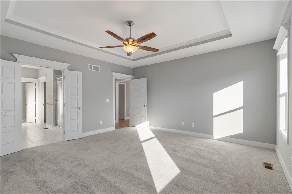 Welcome to Sara’s Meadow, a brand-new community where modern design meets a warm, timeless feel. Introducing The Bentley by Hoffmann Custom Homes — an exclusive 1.5 Story plan offering 5 bedrooms, 3.5 baths, and a dedicated main-level home office, perfect for today’s lifestyle. Step inside and you’ll immediately feel the difference — thoughtful craftsmanship, refined finishes, and a layout designed to make everyday living feel effortless. The main level features gorgeous light-toned engineered hardwood floors and a stunning kitchen built for gathering, with a large island, modern lighting, a gas cooktop and wall oven, and creamy white enameled cabinetry that keeps the space bright and timeless. The great room is spacious and inviting, anchored by a striking stone fireplace that adds warmth and personality without overpowering the room, the perfect place to unwind or host friends and family. Your main-level owner’s suite is a true retreat with spa-like comfort, featuring a freestanding soaker tub, double vanities, a tiled shower, and a generous walk-in closet. Upstairs, you’ll find room for everyone with four additional bedrooms, all with walk-in closets, plus a cozy loft space ideal for a second living area, playroom, or homework zone. And yes, you get the bonus everyone loves: a second upstairs laundry for everyday convenience. The unfinished walkout basement is already plumbed for a future bathroom, giving you the perfect opportunity to expand and customize as your needs grow. Built with long-term comfort and efficiency in mind, this home includes 2x6 exterior wall construction, is prewired for solar, EV charger receptacle, whole house humidifier, energy-saving upgrades, and comes backed by a 10-year structural warranty. All of this is tucked inside the Staley High School attendance area, just minutes from city conveniences, yet still offering that “quiet country feel” everyone wants. Come experience "The Bentley" in Sara’s Meadow!