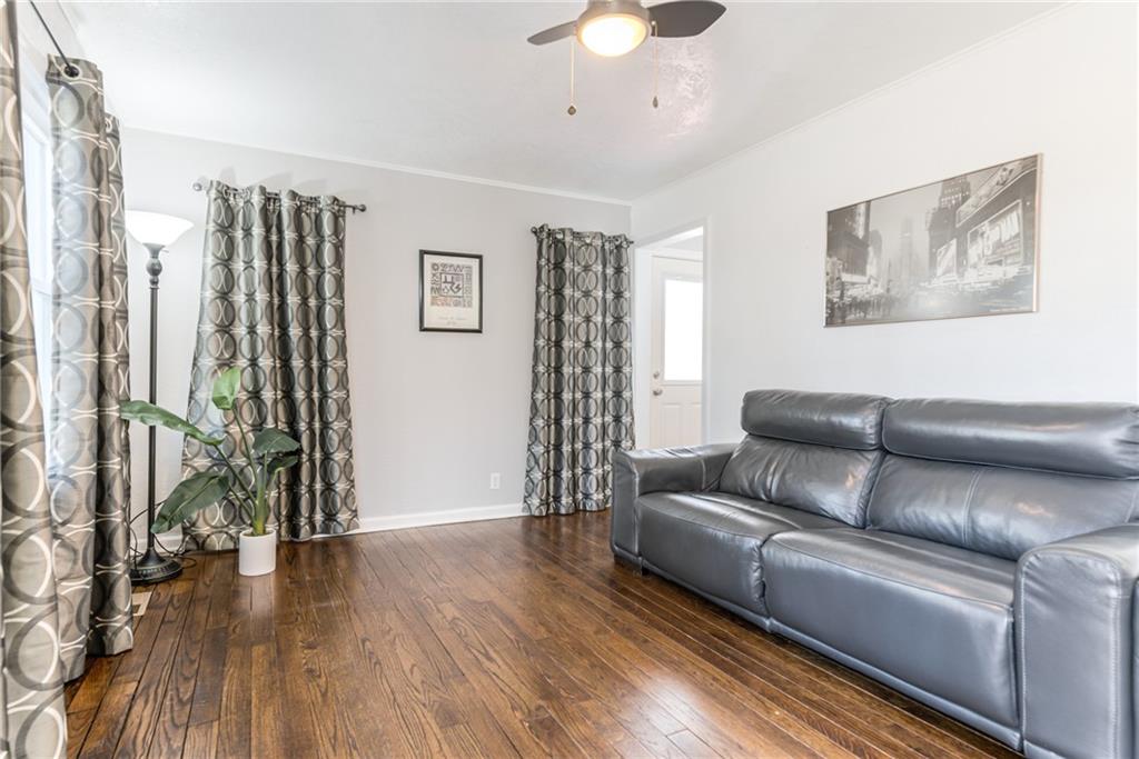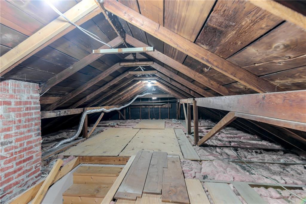 Charming Brick Home with Main-Level Living & Expansion Potential. This adorable two-bedroom brick home is full of character and has been meticulously maintained and thoughtfully updated throughout. The main-level living area offers warm wood floors that extend through the living spaces and bedrooms, creating a cozy and inviting atmosphere. The home features newer vinyl windows, along with a newer roof and gutters, providing peace of mind for years to come. The main bathroom is finished with tile flooring and a large porcelain tub. The updated kitchen boasts granite countertops and a convenient eat-in area, perfect for everyday meals or entertaining. An unfinished attic offers excellent potential for future expansion and additional living space. The basement includes a finished office or recreation room, a dedicated laundry area, and access to a full-car garage, & newer driveway Outside, large deck overlooks the huge backyard provides endless possibilities—ideal for a beautiful garden, outdoor entertaining, or the addition of a detached storage or garage space. This charming home is move-in ready with room to grow and is a must see!
