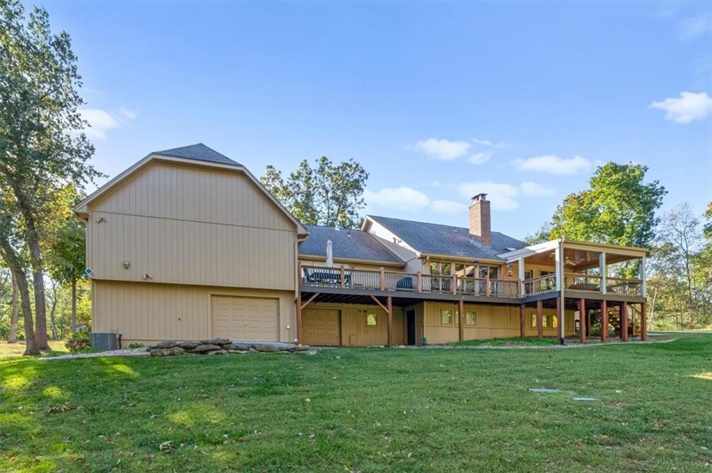 Tucked away at the end of a peaceful cul-de-sac near Lake Lotawana, this exceptional 4-bedroom, 5-bath home offers privacy, space, and thoughtful design with over 4000 finished sqft on over 2 acres. A true retreat, the property features a serene back deck overlooking the expansive acreage—perfect for morning coffee, entertaining, or simply enjoying the quiet setting. Inside, you’ll find a flexible layout with a bonus office ideal for working from home. The primary wing is a standout, featuring dual bathrooms, two walk-in closets, and a private laundry room for ultimate convenience. Car enthusiasts and hobbyists will love the five-car garage setup, including three front-facing garages and two additional garages tucked behind the home—perfect for storage, recreational vehicles, or workshop space. Located on a quiet street in a highly desirable Lake Lotawana area of Lee’s Summit, this home blends luxury, function, and peaceful country living just minutes from city amenities.