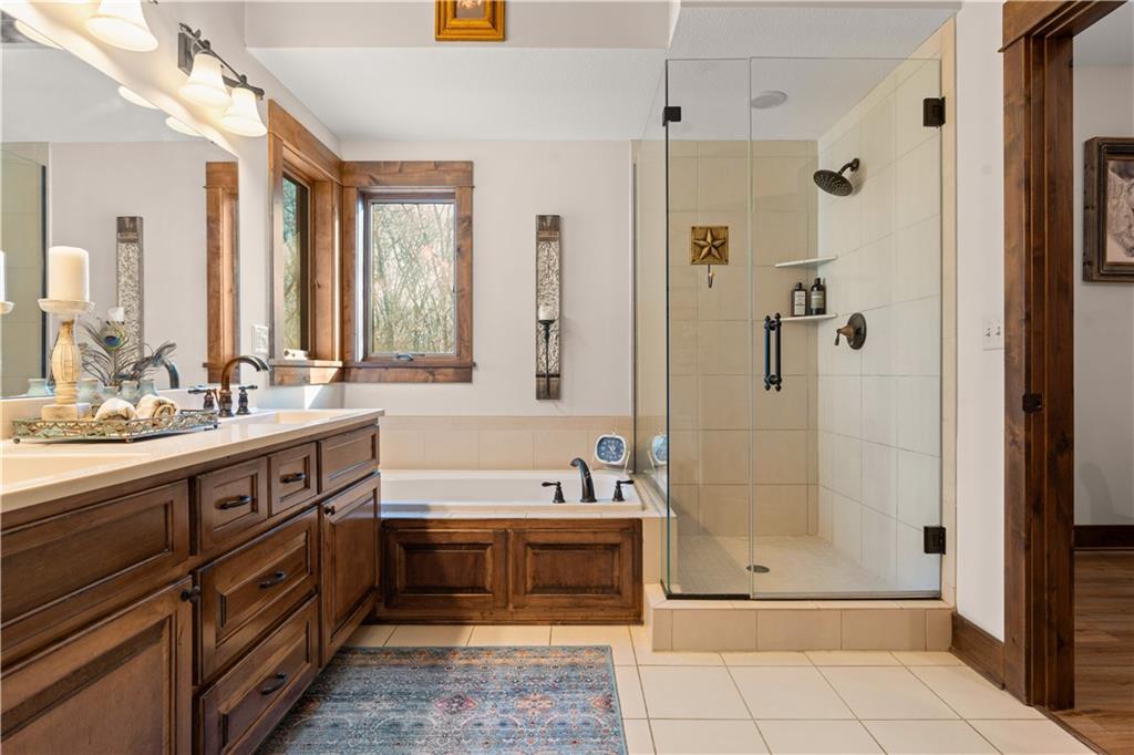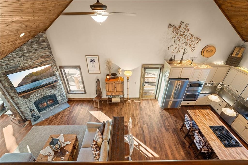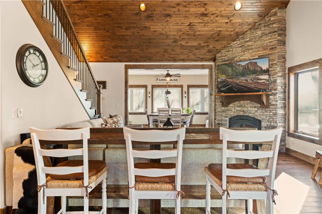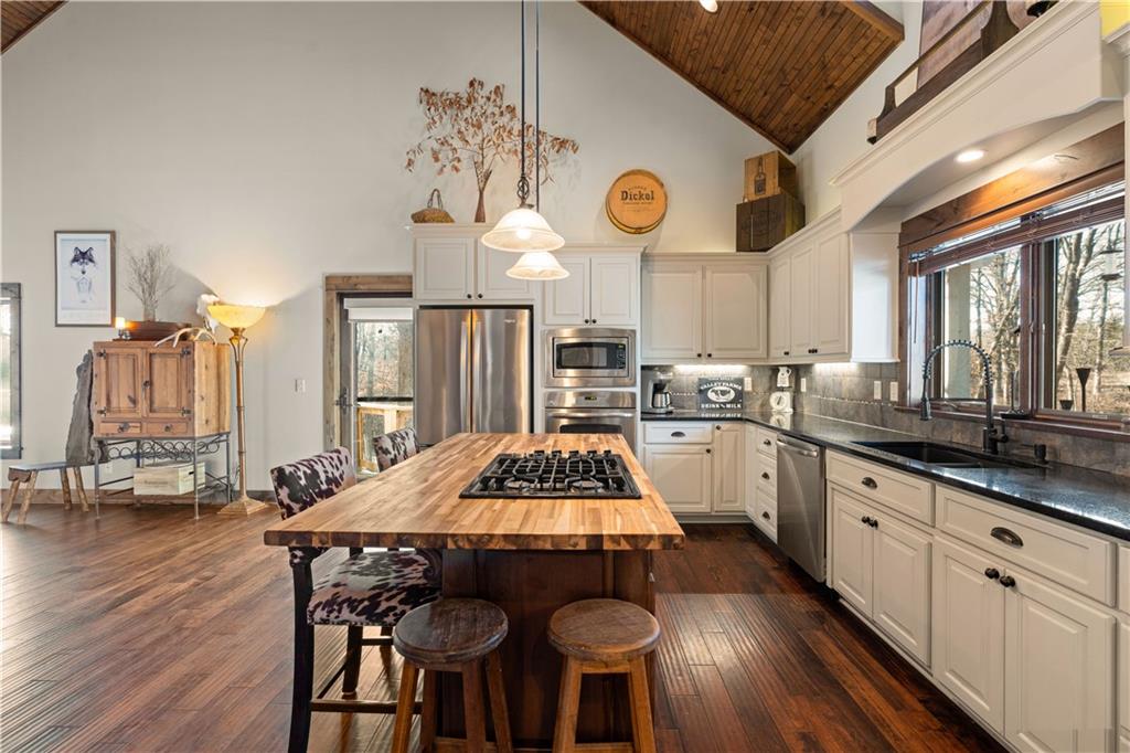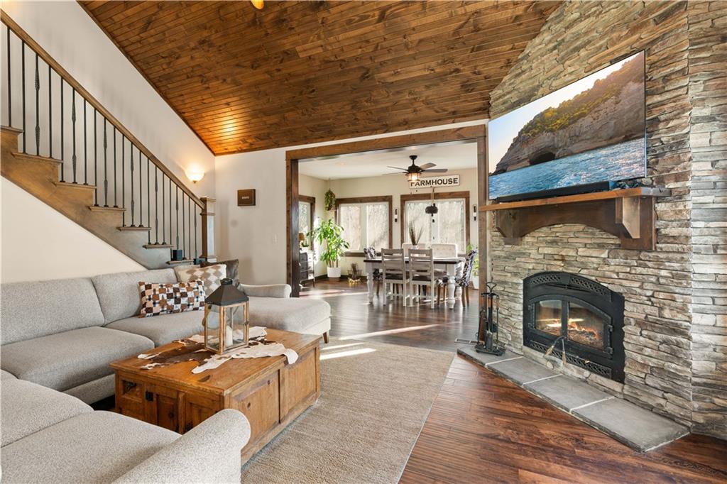 A true slice of paradise awaits with this custom-built 3-bedroom, 2.5-bath home set on nearly 10 acres of peaceful countryside. Surrounded by mature timber, open pasture, 1/4 acre pond, and extensive walking and riding trails, this property offers privacy, beauty, and functionality. A nearly 500 yard long driveway leads you to your own private retreat and an impressive 30x48 shop, fully insulated with closed-cell spray foam, featuring concrete floors, its own electric meter, 100-amp service, and two 8x10 garage doors with automatic openers. A brand-new Class 4 high-impact roof was installed in June 2025 and includes a 25-year warranty. Inside, the open-concept layout showcases vaulted wood ceilings and a striking floor-to-ceiling stone, wood-burning fireplace, creating a warm and inviting great room that anchors the home. Custom cabinetry, walnut-stained alder ceilings, birch hardwood flooring, alder trim, and custom doors highlight the craftsmanship throughout. The kitchen is appointed with granite countertops, stainless steel appliances, a gas cooktop, walk-in pantry, and ample storage. Outdoor living is enhanced by an 18x16 deck with illuminated railing, grill bump-out, and extended walkway—perfect for entertaining or enjoying the serene surroundings. Additional highlights include a Marathon Rheem 50-gallon water heater with lifetime tank warranty, water softener, whole-house water filtration system, GEO Thermal ground source heat pump, Andersen windows, and durable 2x6 exterior walls. A fenced backyard with doghouse and direct access to the home adds convenience, while the unfinished walk-out basement offers endless potential for future living space, workshop, or recreation area. Completing the beauty of this retreat-style home, this exceptional property blends craftsmanship, energy efficiency, and natural surroundings for refined country living at its finest.