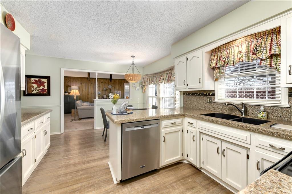 Lovely 1.5 Story in Quivira Meadows. Quivira Meadows is a small neighborhood with only one way in and one way out of the subdivision. This spacious & well cared for home has so much to offer! The kitchen has been updated with newer SS Appliances & Granite Counter Tops also has an eat in area w/bay window. The laundry and half bath are located right off the kitchen. There is a large Great room with vaulted beam ceiling and a cat walk that over looks the room. The main floor also hosts a formal dinning room and large bonus room w/window seats for office or additional tv room. The master suite is also on the main floor w/walk-in shower and double vanity. The 3 generous sized secondary bedrooms are on the second level w/updated full bath w/Granite vanity top! The lower level has some finished areas for additional living space or work out room. The home has upgraded windows and nice sized deck for grilling or entertaining. The location is hard to beat with quick highway access. Great Shawnee Mission South school district.
