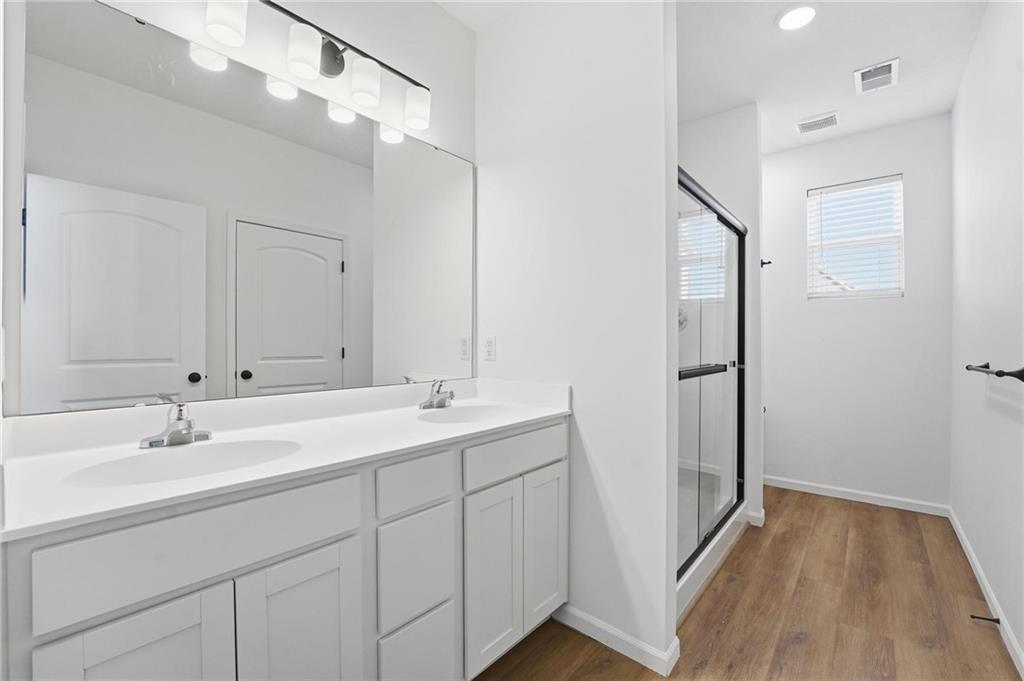Better than new - UPGRADES and priced well below reproduction! Gorgeous ranch is open and bright. Welcoming front porch offers opportunity to sit out front. Through front door, open living space with clean white walls, shiplap surrounds the gas fireplace! Kitchen has large center island, upgraded QUARTZ countertops, subway tile backsplash, stainless steel appliances and great pantry! Spacious dining area has large window allowing natural light. Full glass door out to covered patio & level backyard. The primary suite is at the back of the home for quiet privacy. Large bedroom has high ceiling, fantastic walk-in closet! The private bath has double vanity, huge shower, LVP flooring. There are 2 additional bedrooms on other side of home, with walk-in closets! The hall bath has same LVP flooring (looks like wide plank wood), shower/tub. Spacious laundry room on the main level has great storage space. The 2 car garage has upgraded garage door opener! Why wait and build, and spend a lot more, when this beautiful home is ready NOW.