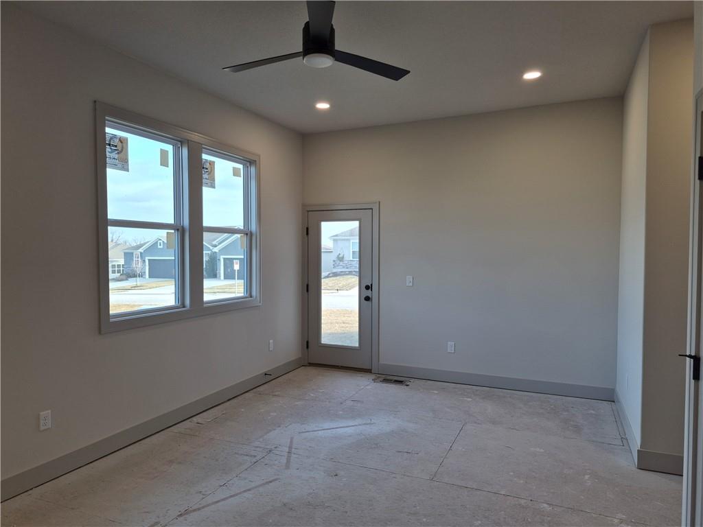 Lot 17R Legato. Check out this ENERGY EFFICIENT home with a HERS rating of 50! And in a GOLF COURSE community! Fox Block insulated concrete forms make this home energy efficient from the ground up. Also included are a 95% efficiency furnace and higher than typical wall insulation. This home provides three bedrooms plus a main floor office as well as an oversized garage and amazing pantry you can load straight from the garage! Open Living Room, Spacious Kitchen and Breakfast Area with quartz counter and Island. Huge walk in pantry. Nice Primary bedroom and Bath Suite. Large walk in closet. Lower Level has a family room, 2 bedrooms, full bath. Tons of storage. HOA provides lawn maintenance (mowing and treatments), maintenance of initial landscaping, sprinkler turn on and turn off, snow removal over two inches, as well as paint, roof and gutters, as needed. Neighborhood pool, play area and basketball and pickleball/tennis courts included as well. Excellent schools, good highway access for easy commute to all parts of the city! 10 minutes to The Legends and 30 to the airport, downtown and Lawrence! Acclaimed Basehor-Linwood Schools!