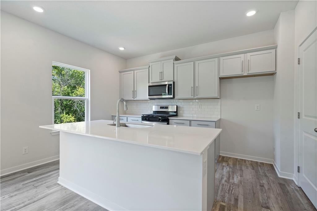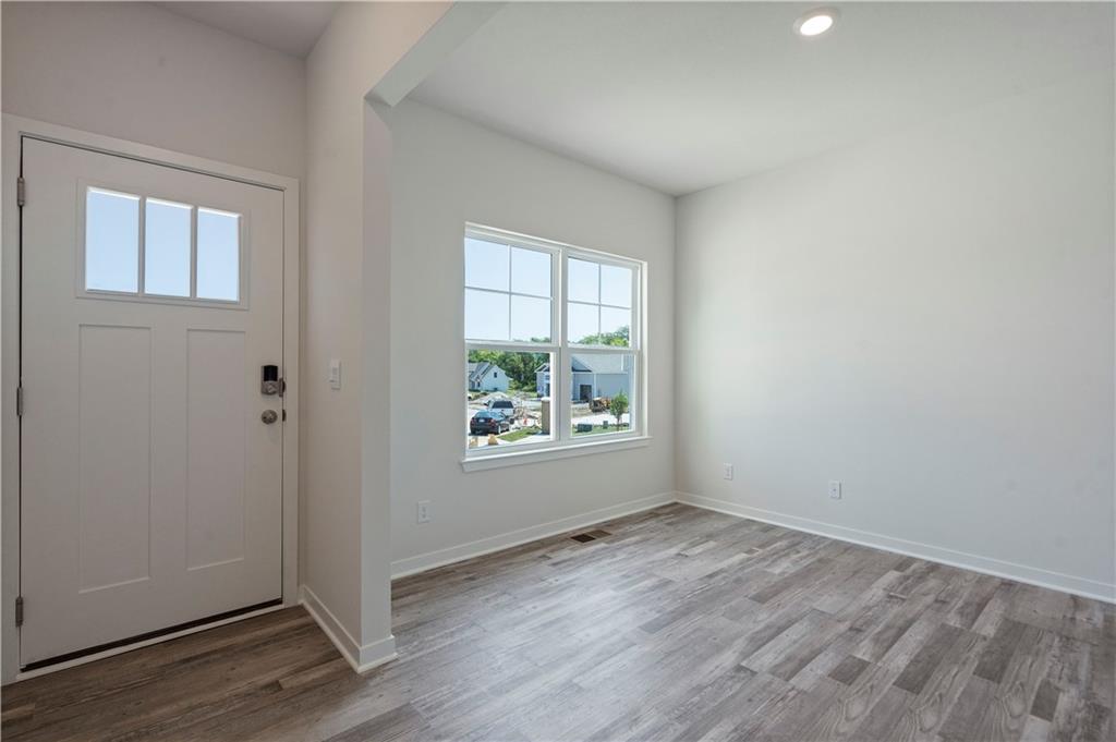 Discover a home where modern elegance meets everyday convenience, nestled in the heart of the Woodland Crossing community. Built by D.R. Horton, this stunning residence combines superior craftsmanship with the latest in-home design, creating a space that’s as functional as it is beautiful. The exterior of the home is nothing short of impressive, featuring James Hardie® siding with board and batten and stone accents. A stylish insulated front door not only welcomes you warmly but contributes to the home’s overall energy efficiency. As you step inside, you’ll be greeted by 9-foot ceilings that lend a spacious feel to the living areas. The gourmet kitchen, equipped with 36-inch painted maple cabinets, quartz countertops, and a suite of Whirlpool® stainless steel appliances, is perfect for both everyday meals and entertaining. The bathrooms are designed to be your personal sanctuary, with features like quartz-topped vanities, Moen® Chrome Faucets, and spacious showers creating a serene retreat from the hustle and bustle of daily life. This home is also equipped with cutting-edge Smart Home technology. Control your environment effortlessly with a Honeywell® Pro Z-Wave® Thermostat, Amazon Echo, and a connected home panel, all designed to make your life easier and more comfortable. LED lighting throughout the home, and energy-efficient insulated windows ensure that this home is as practical as it is beautiful. From luxury vinyl plank flooring to a garage complete with an opener(s), every detail in this home has been thoughtfully considered. The dual data/TV lines in the main bedroom and family room demonstrate a commitment to convenience and modern living. D.R. Horton’s attention to detail and dedication to quality are evident in every corner of this home. Don’t miss the opportunity to own this exceptional property in Woodland Crossing. Schedule a tour today and see for yourself why this home is the perfect blend of luxury and convenience.