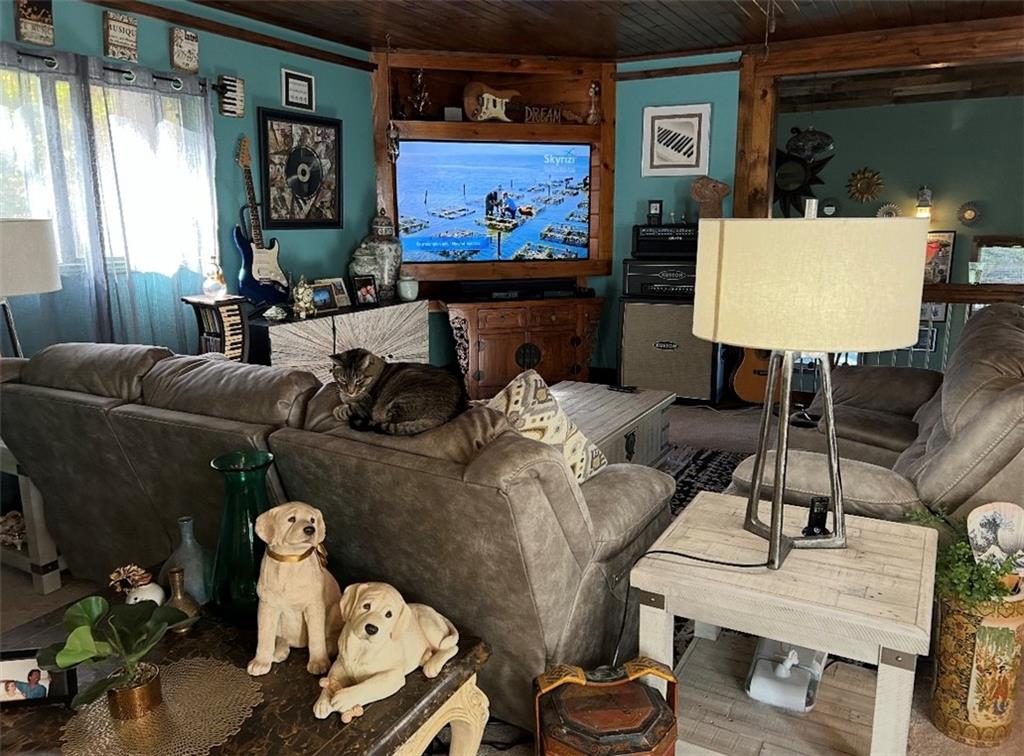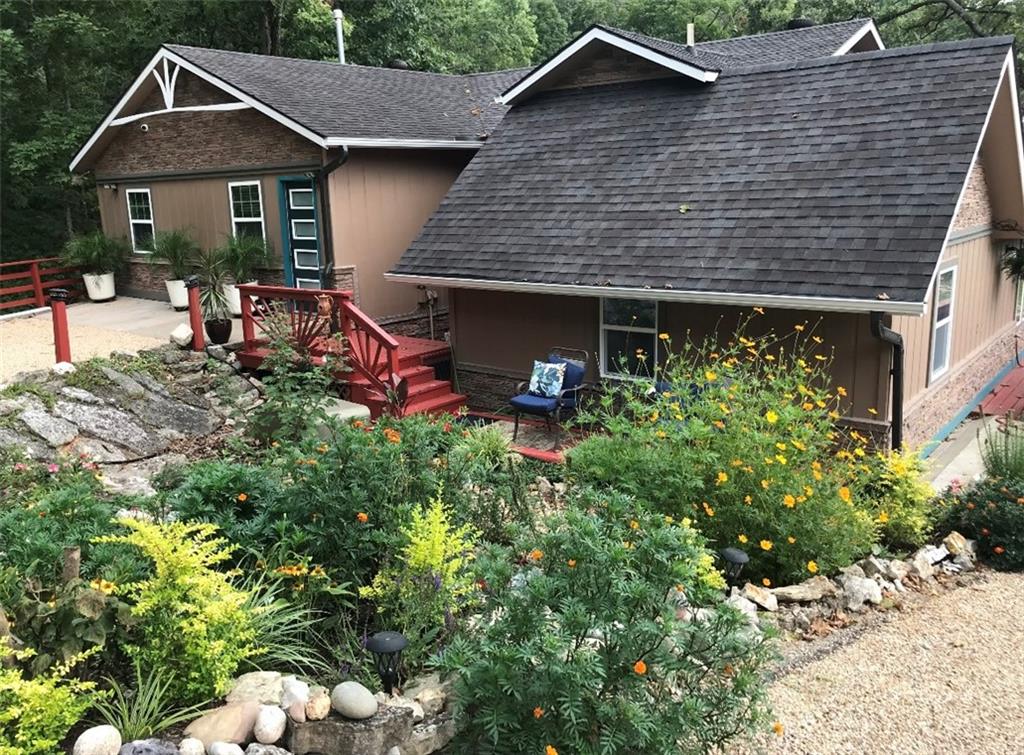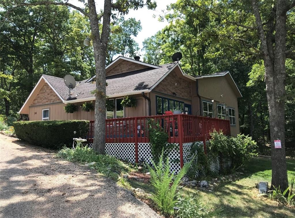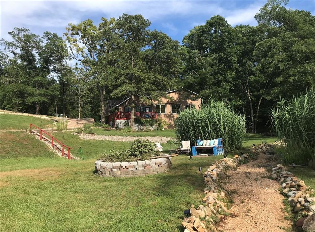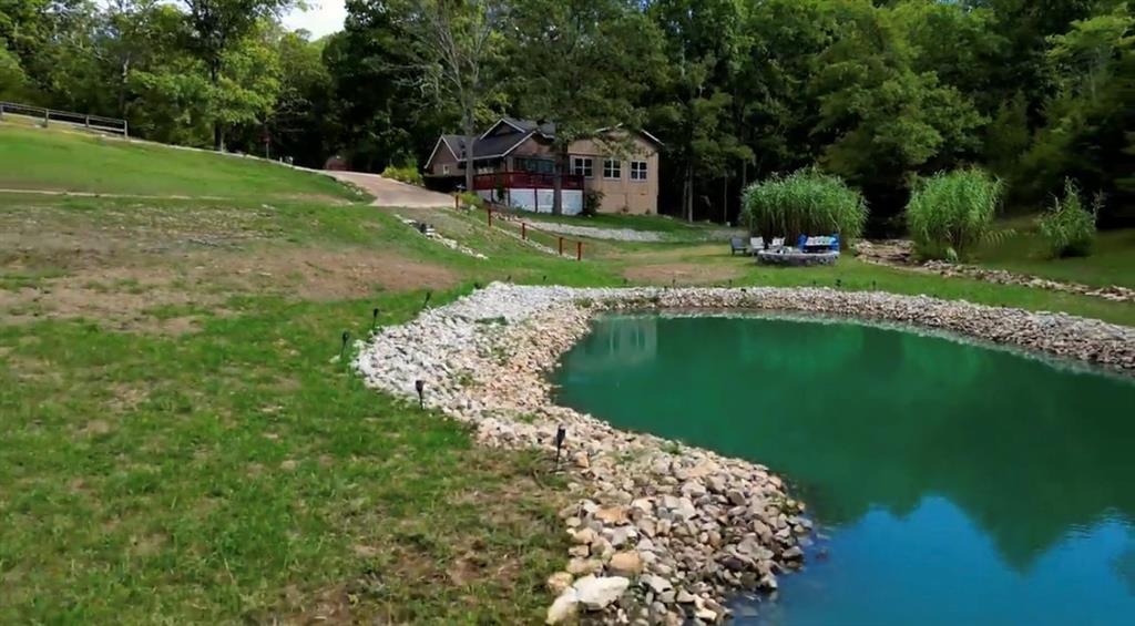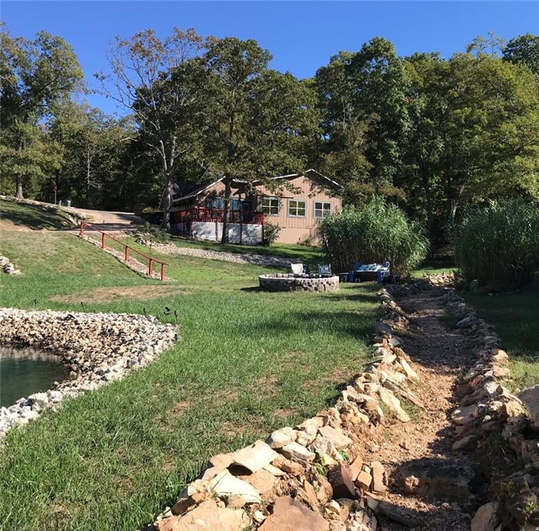 Consider escaping the noise and live with intention! Nestled in Irish Hills Estates you will find a beautifully, well designed, landscaped 2-bedroom, 2 bath home which offers a rare combination of privacy, and everyday comfort in a truly serene Ozarks setting. Surrounded by Mark Twain National Forest, it flows naturally towards a large aqua colored stocked pond, creating a peaceful backdrop for morning coffee, quiet reflection, or watching the seasons change. A large 10 ft. fire pit and benches anchor the outdoor space and invites memorable evenings perfect for gatherings, roasting marshmallows, or simply enjoying the star-filled sky from the porch above. The home has been remodeled with new spaces designed to enhance both function and quality of life. An elevated floor provides a large living-lounging area, sporting a custom bar with large screen TV viewing opportunity. All with open to below views of the interior home with eye-popping vistas of the 30 ft. canes, straddling the rock lined stream with seating around the firepit and the pond beyond. Some new comfort features also include Rain soft EC 4, carbon water filter, HVAC, NORWECO sewer treatment system, hot water tank and all new carpet allow you to move in and enjoy without the stress of immediate projects. New waterlines from city connection to the home were added. This unique layout offers comfortable, easy living, making it ideal for full-time living, a weekend retreat or entertaining with east. Just a short drive to Table Rock Lake, where boating, fishing and lake days are always withing reach. You get the freedom of comfortable living without sacrificing access to one of the Ozark's most beloved destinations. Located in the Reeds Spring School District and just a short drive to Kimberling City, Silver Dollar City, all the shopping, entertainment and dining that Branson offers. Truly a RARE find!