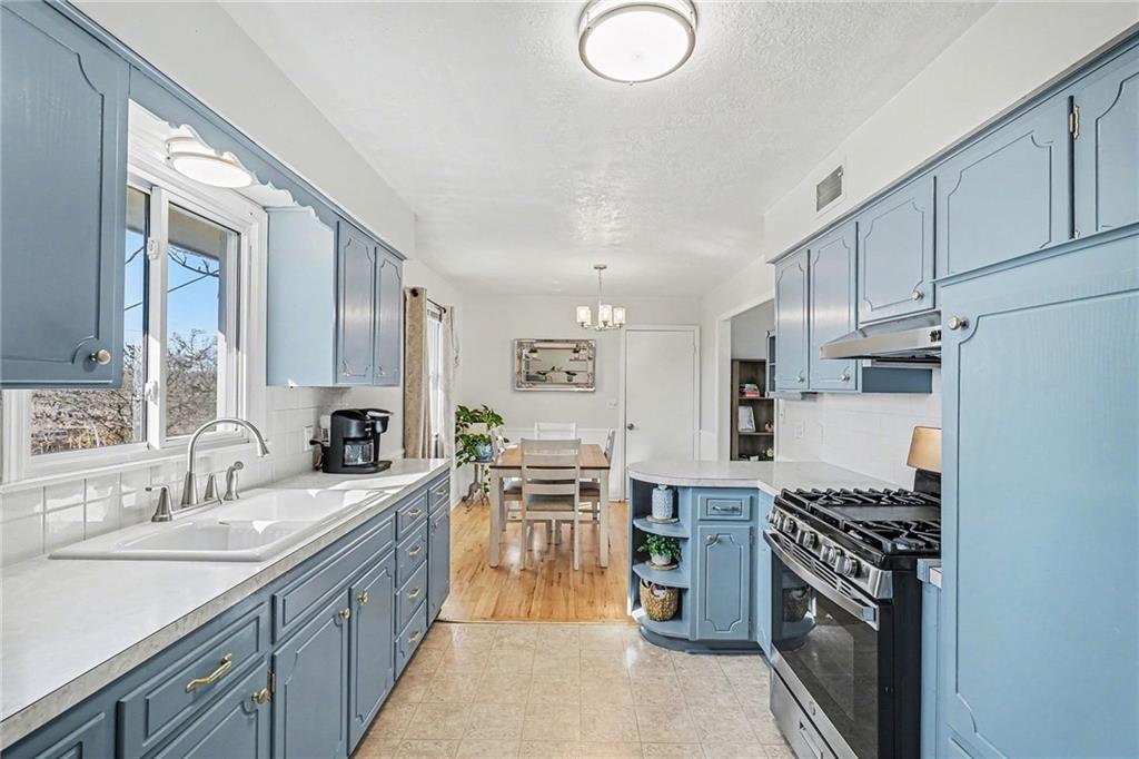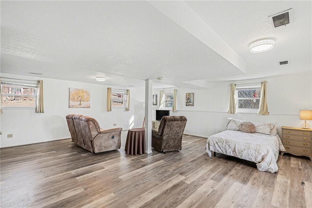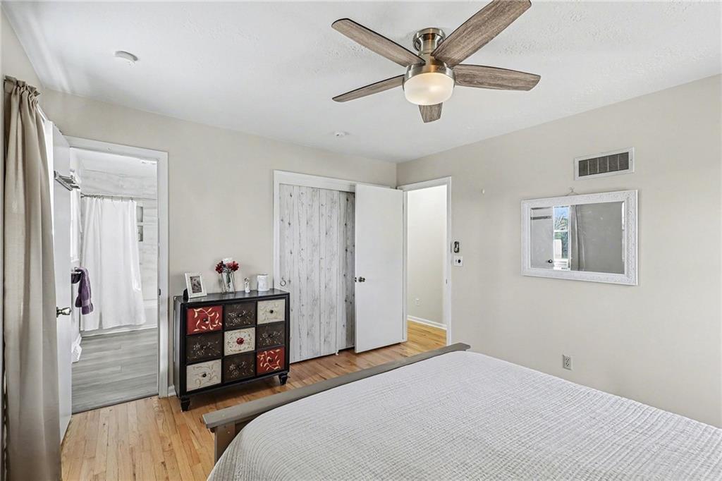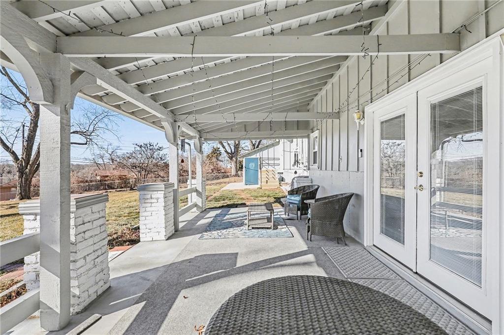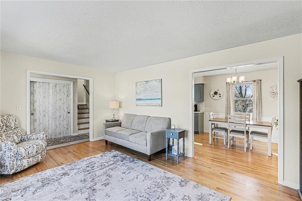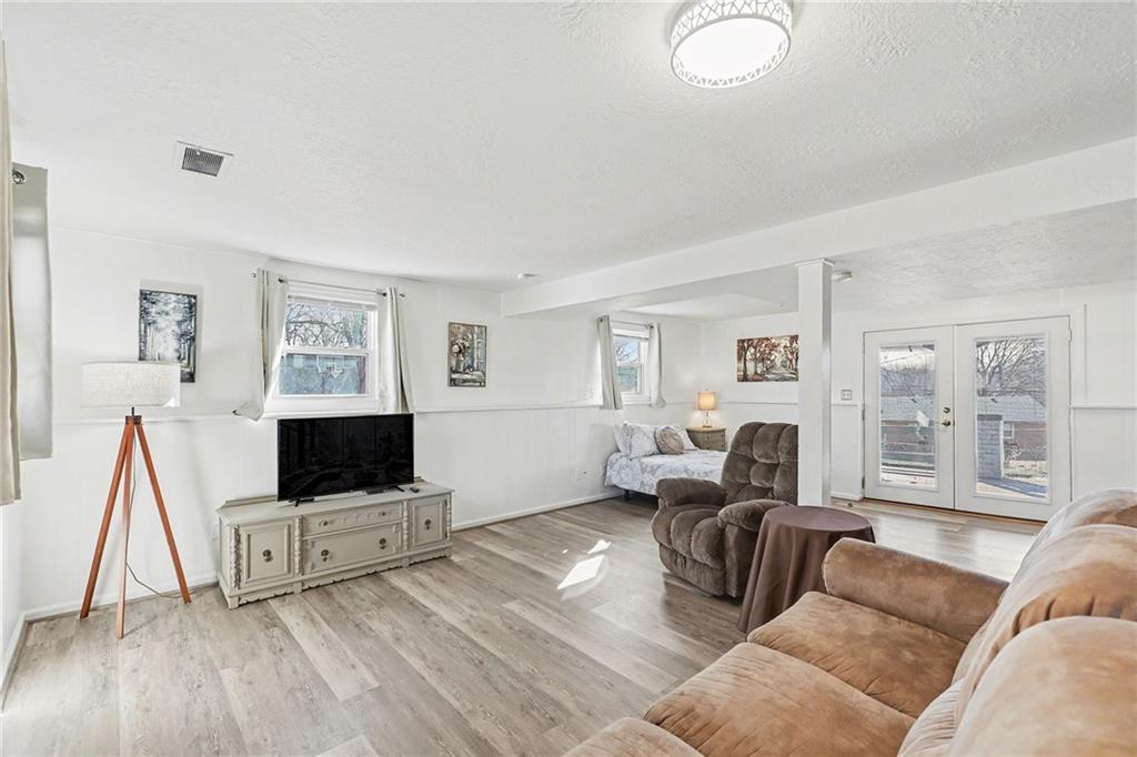Welcome home to this well-maintained side to side split beauty tucked away in a quiet South KC neighborhood. Offering 3 bedrooms, 2 baths, and a 1-car garage with a double-wide driveway, this home perfectly blends classic charm with modern convenience. Step inside to be greeted by gorgeous refinished blonde hardwood floors and fresh paint throughout. The living room features newer windows which provide lots of natural sunlight which is carried over into the eat-in kitchen. The kitchen is ready for your culinary adventures, featuring Formica countertops and a newer stainless steel gas range and refrigerator. Upstairs, is 3 bedrooms and a Jack and Jill hall bath that has been beautifully updated featuring NEW ceiling-high tile in the shower with custom built-ins for added convenience, and NEW vinyl flooring and vanity top. The Primary Suite: Features convenient his & her closets and a Jack & Jill bath. All the bedrooms feature ceiling fans and those signature blonde hardwood floors. Next is the Versatile Lower Level: Private Living Quarters. The lower level offers incredible flexibility! With its own private entrance, this space features a full bath with a shower, a kitchenette, and a spacious bedroom with French doors leading to the covered patio. Bathed in natural sunlight and finished with NEW vinyl flooring, it is ideal for a guest suite, rental opportunity, separate living quarters, or a home office. Step outside to the Outdoor Oasis- Relax or host summer BBQs on the 1/3-acre fenced yard. Whether it's rain or shine, the covered patio is perfect for kids, pets, and entertaining. Peace of mind comes standard with a long list of NEW and NEWER updates: NEW exterior paint (2020), NEW HVAC (2020), NEW disposal (2020), NEW garage door opener (2020), NEWER energy-efficient windows for maximum natural sunlight. Leaf Guard system with a transferable warranty.