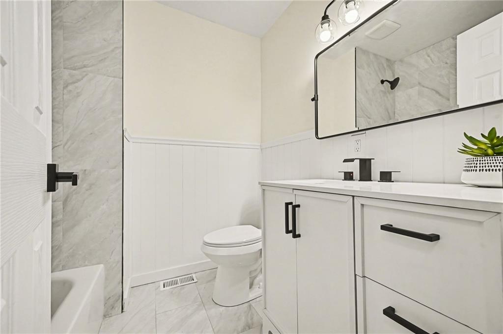 Welcome home to this tastefully remodeled 3-bedroom ranch featuring a 4th non-conforming bedroom. Fully updated from head to toe, this home offers effortless, move-in-ready living with nothing left to do but unpack and enjoy. Recent upgrades include a brand-new HVAC system, all-new cabinetry, beautifully updated bathrooms, refinished hardwood floors, quartz countertops, and fresh interior and exterior paint, creating a bright, modern feel throughout. Kitchen has a center island, gorgeous tiled backsplash, stainless steel appliances & is open to the homes' cozy living room. Enjoy a finished lower level and being walking distance to the neighborhood park. Thoughtful finishes and quality updates make this home the perfect blend of style, comfort, and convenience.