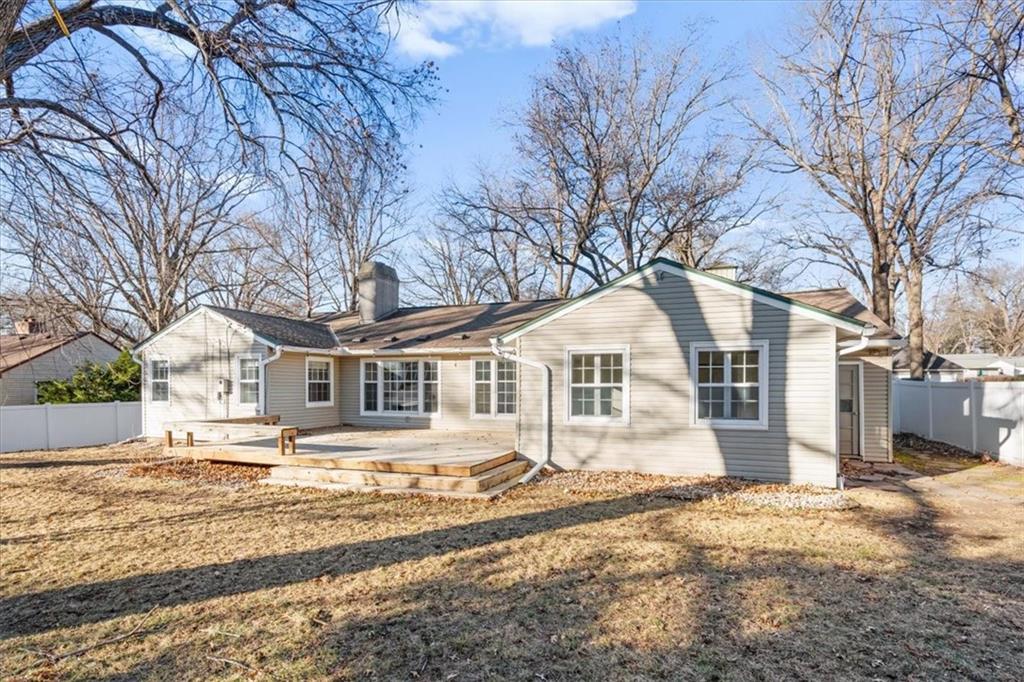 Situated on a fantastic level lot just off gorgeous Ward Parkway, this 3 bed, 2 bath ranch offers true one level living in the heart of Romanelli. Kitchen flows seamlessly to dining room while abundant natural light fills living room, complete with vaulted ceilings and fireplace. Secondary living room on the back of the house provides even more square footage for hanging out. Enjoy your side entrance to your kitchen or the formal front entryway. 3 spacious bedrooms sit on the west side of the home, two sharing an updated full bathroom. The private primary includes an en suite. Downstairs, find a full basement, stubbed for a full bathroom and awaiting your finishing touches. 2 car attached garage, plus a spacious back deck in a private fenced back yard. Newer HVAC and hot water heater, radon mitigation system installed.
