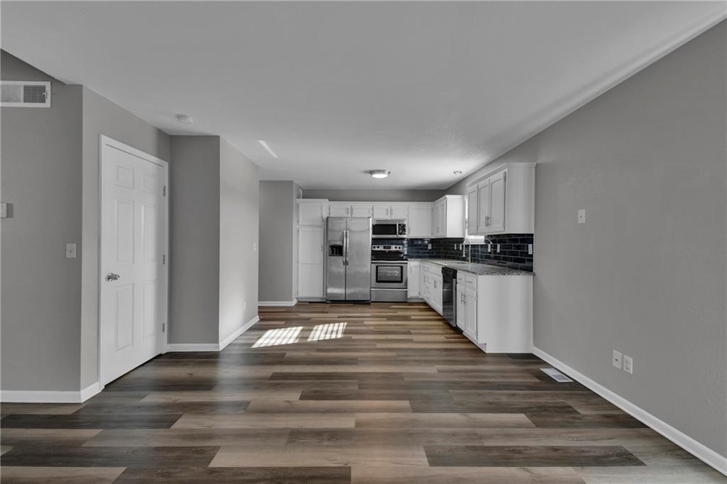 Beautifully remodeled income-producing duplex (3 bedroom, 2 and a half bath each side) that offers a fantastic opportunity for owner-occupants or investors alike. Each unit features a bright, open living area with vaulted ceilings, luxury vinyl plank flooring, and a dedicated dining space that flows seamlessly into the updated kitchen. The kitchens are finished with new cabinetry, granite countertops, subway tile backsplash, and stainless-steel appliances. A walkout from the main level leads to a deck overlooking the yard, perfect for relaxing or entertaining. Both units include three spacious bedrooms with plush carpeting and ceiling fans. The primary bedroom offers a private en suite bath and a walk-in closet. The finished lower level provides additional living space with luxury vinyl plank flooring and walkout access. Well-maintained and thoughtfully updated, this duplex is move-in ready and positioned for strong rental potential in a desirable Liberty location.