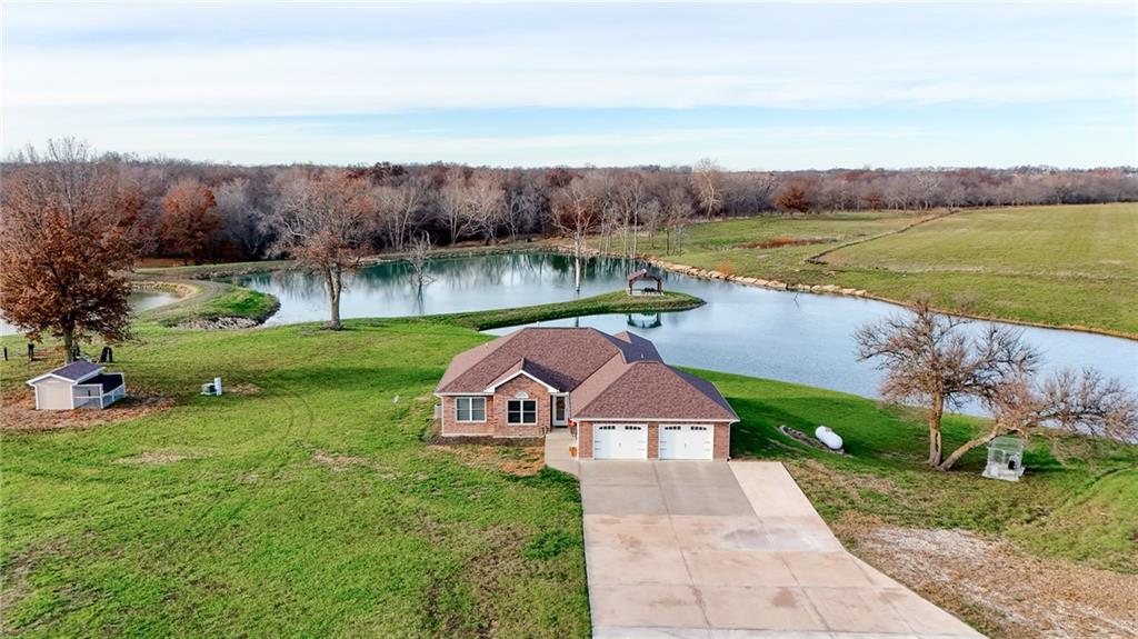 This gorgeous ranch on 60 acres with a 4.5 acre lake is your own slice of heaven!! Owner's pride shows throughout!!! So many extra features you won't believe all it has to offer; new deck (2025), screened in porch (2025), new gutters (2025), oversized concrete driveway (2023), 4.5 acre lake, new gazebo (with electricity), chicken coop, 2500 feet of water lines for 3 auto waterers and paddocks, and a well was added for cattle. Property is fenced and ready for cattle, there is also a duck pond to fill for hunting and this property is a hunter's paradise with many large bucks taken! The lake is stocked with bass, crappie and catfish and the small 1/2 acre pond is stocked with catfish. Inside you'll love the gorgeous kitchen with pot filler and gas stove, custom cabinetry, freshly remodeled laundry room, and the unfinished basement with 1/2 bathroom. The large windows showcase views of the lake, you won't ever want to leave!! The murphy bed, dog kennel and chicken coop remain with the property.